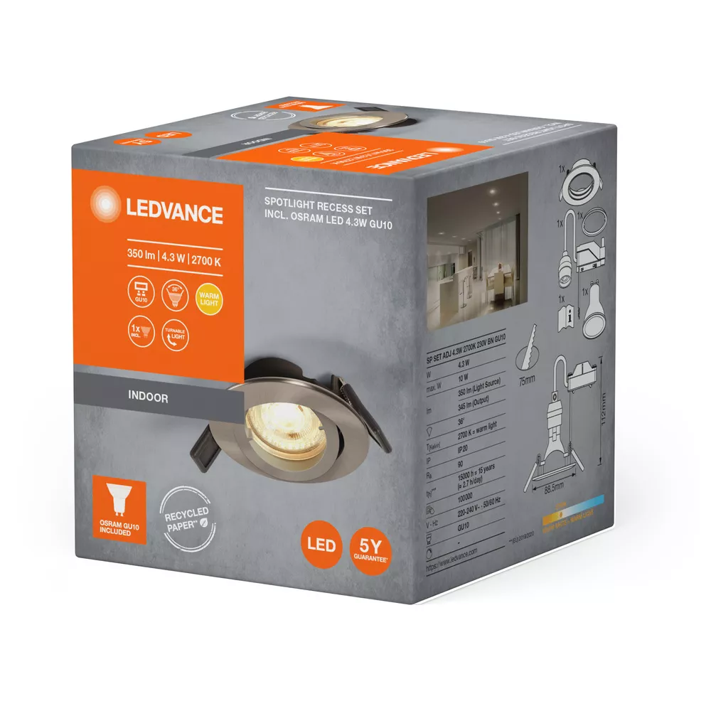Oprawa LED SPOT RECESS TWISTLOCK GU10 Incl. Osram LED 4.3W GU10 Brushed Nickel