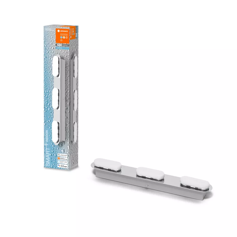 Inteligentna dekoracyjna oprawa sufitowa i ścienna do łazienki z technologią Wi-Fi IP44 TW z możliwością ściemniania. Cechy produktu: Stopień ochrony: IP44. Możliwość sterowania za pomocą aplikacji LEDVANCE SMART+ (z systemem Android co najmniej 8.0 lub iOS 14.0). Możliwość sterowania za pomocą głosu: Asystent Google lub Amazon Alexa. Regulacja temperatury barwowej światła za pomocą Tunable White: 3000…6500 K. Ściemnialne. Protokół sieciowy: WiFi. Zalety produktu: Łatwa i szybka instalacja. Obszary zastosowań: Łazienki. Wyposażenie / Akcesoria: Wspornik montażowy w zestawie. Śruby i kołki montażowe dostarczone w zestawie. Sterowanie za pomocą aplikacji lub głosu wymaga kompatybilnego systemu sterowania domem inteligentnym. Do sterowania za pomocą aplikacji LEDVANCE SMART+ wymagany jest smartfon lub tablet (z systemem Android co najmniej 8.0 lub iOS 14.0). Porady dotyczące bezpieczeństwa: Sprawdź przydatność ściany i sufitu. Jeśli nie jesteś pewien, zasięgnij profesjonalnej porady.. Wszystkie podłączenia elektryczne muszą być wykonane przez osobę wykwalifikowaną.. Uwaga, ryzyko porażenia prądem..