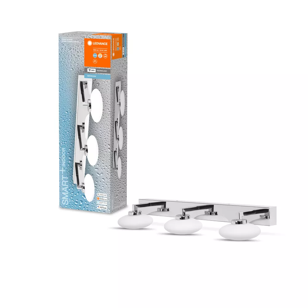 Inteligentna dekoracyjna oprawa sufitowa i ścienna do łazienki z technologią Wi-Fi IP44 TW z możliwością ściemniania. Cechy produktu: Stopień ochrony: IP44. Możliwość sterowania za pomocą aplikacji LEDVANCE SMART+ (z systemem Android co najmniej 8.0 lub iOS 14.0). Możliwość sterowania za pomocą głosu: Asystent Google lub Amazon Alexa. Regulacja temperatury barwowej światła za pomocą Tunable White: 3000…6500 K. Ściemnialne. Protokół sieciowy: WiFi. Zalety produktu: Łatwa i szybka instalacja. Obszary zastosowań: Łazienki. Wyposażenie / Akcesoria: Wspornik montażowy w zestawie. Śruby i kołki montażowe dostarczone w zestawie. Sterowanie za pomocą aplikacji lub głosu wymaga kompatybilnego systemu sterowania domem inteligentnym. Do sterowania za pomocą aplikacji LEDVANCE SMART+ wymagany jest smartfon lub tablet (z systemem Android co najmniej 8.0 lub iOS 14.0). Porady dotyczące bezpieczeństwa: Sprawdź przydatność ściany i sufitu. Jeśli nie jesteś pewien, zasięgnij profesjonalnej porady.. Wszystkie podłączenia elektryczne muszą być wykonane przez osobę wykwalifikowaną.. Uwaga, ryzyko porażenia prądem..