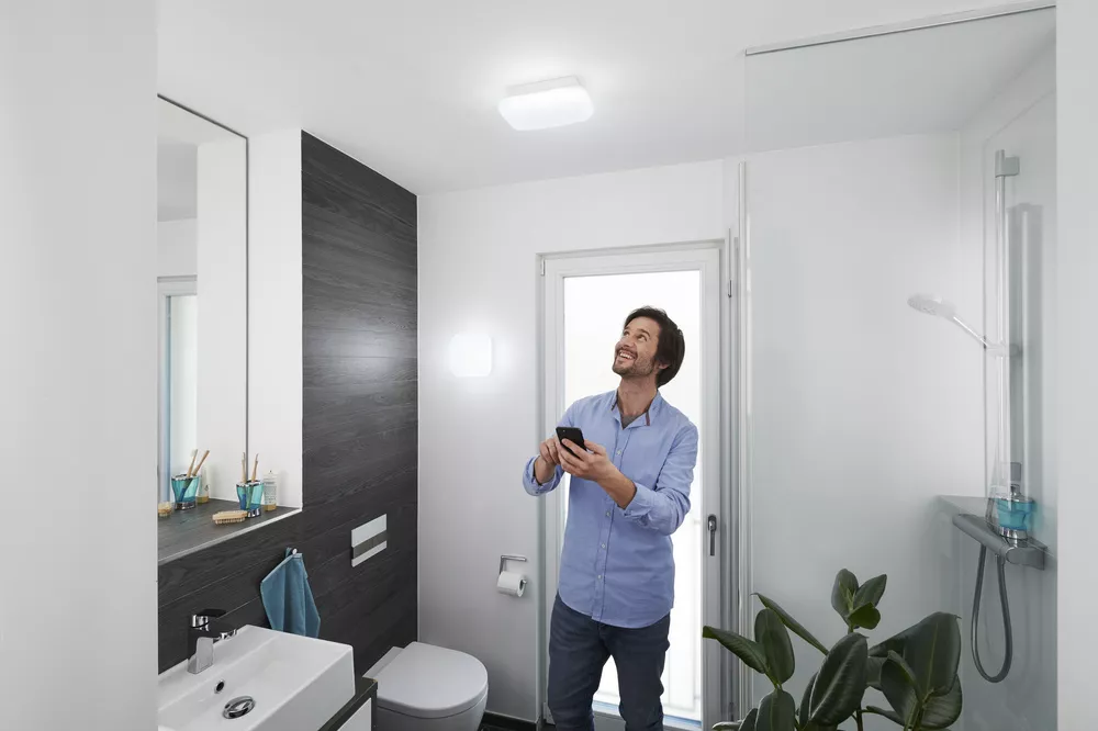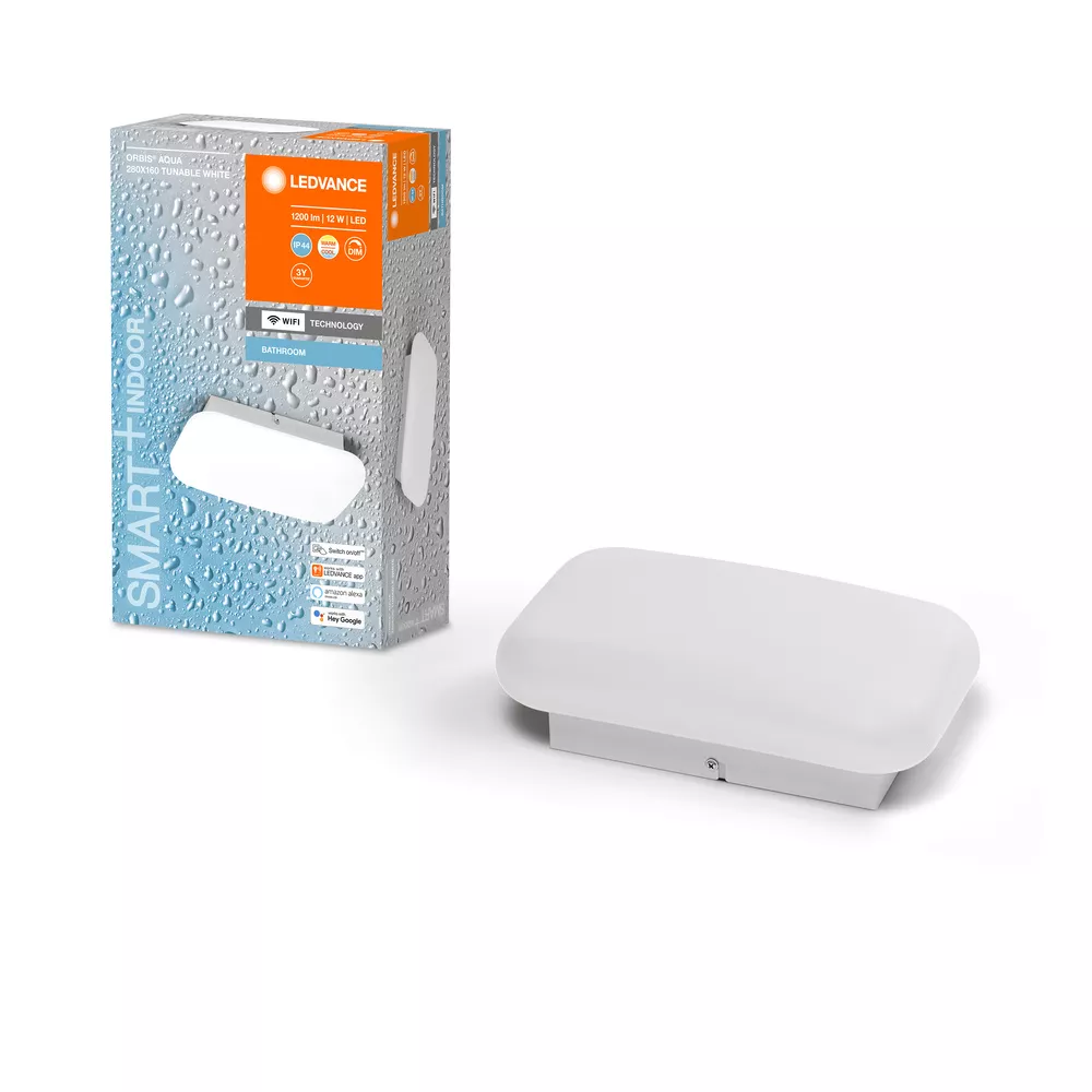 Inteligentna dekoracyjna oprawa sufitowa i ścienna do łazienki z technologią Wi-Fi IP44 TW z możliwością ściemniania. Cechy produktu: Stopień ochrony: IP44. Możliwość sterowania za pomocą aplikacji LEDVANCE SMART+ (z systemem Android co najmniej 8.0 lub iOS 14.0). Możliwość sterowania za pomocą głosu: Asystent Google lub Amazon Alexa. Regulacja temperatury barwowej światła za pomocą Tunable White: 3000…6500 K. Ściemnialne. Protokół sieciowy: WiFi. Zalety produktu: Łatwa i szybka instalacja. Obszary zastosowań: Łazienki. Wyposażenie / Akcesoria: Wspornik montażowy w zestawie. Śruby i kołki montażowe dostarczone w zestawie. Sterowanie za pomocą aplikacji lub głosu wymaga kompatybilnego systemu sterowania domem inteligentnym. Do sterowania za pomocą aplikacji LEDVANCE SMART+ wymagany jest smartfon lub tablet (z systemem Android co najmniej 8.0 lub iOS 14.0). Porady dotyczące bezpieczeństwa: Sprawdź przydatność ściany i sufitu. Jeśli nie jesteś pewien, zasięgnij profesjonalnej porady.. Wszystkie podłączenia elektryczne muszą być wykonane przez osobę wykwalifikowaną.. Uwaga, ryzyko porażenia prądem..