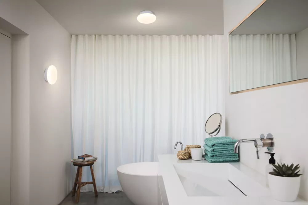 Inteligentna dekoracyjna oprawa sufitowa i ścienna do łazienki z technologią Wi-Fi IP44 TW z możliwością ściemniania. Cechy produktu: Stopień ochrony: IP44. Możliwość sterowania za pomocą aplikacji LEDVANCE SMART+ (z systemem Android co najmniej 8.0 lub iOS 14.0). Możliwość sterowania za pomocą głosu: Asystent Google lub Amazon Alexa. Regulacja temperatury barwowej światła za pomocą Tunable White: 3000…6500 K. Ściemnialne. Protokół sieciowy: WiFi. Zalety produktu: Łatwa i szybka instalacja. Obszary zastosowań: Łazienki. Wyposażenie / Akcesoria: Wspornik montażowy w zestawie. Śruby i kołki montażowe dostarczone w zestawie. Sterowanie za pomocą aplikacji lub głosu wymaga kompatybilnego systemu sterowania domem inteligentnym. Do sterowania za pomocą aplikacji LEDVANCE SMART+ wymagany jest smartfon lub tablet (z systemem Android co najmniej 8.0 lub iOS 14.0). Porady dotyczące bezpieczeństwa: Sprawdź przydatność ściany i sufitu. Jeśli nie jesteś pewien, zasięgnij profesjonalnej porady.. Wszystkie podłączenia elektryczne muszą być wykonane przez osobę wykwalifikowaną.. Uwaga, ryzyko porażenia prądem..