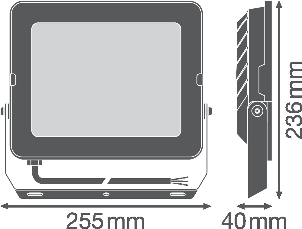 Naświetlacz o strumieniu świetlnym do 9000 lm. Cechy produktu: Odbłyśnik, symetryczny rozsył światła z kątem rozsyłu 100° x 100°. Ochrona przed przepięciami: do 4 kV (L / N-PE), 2 kV (L-N). Zaciski montażowe z kątem 30° i szerokim obszarem obrotu. Fabrycznie zainstalowany, elastyczny przewód o długości 1 m (H05RN-F), 3 x 1,0 mm². Zawór odpowietrzający optymalizujący wymianę powietrza, bez uszczerbku dla stopnia ochrony IP. Zalety produktu: Wytrzymała, jednocześnie lekka i zwarta konstrukcja. Bezpieczne i bardzo równomierne oświetlenie dzięki wykonanemu ze szkła hartowanego matowemu kloszowi. Brak górnego współczynnika rozsyłu światła (ULOR 0%) w przypadku zamontowania pod kątem 0°. Oszczędność energii aż do 90% (w porównaniu z naświetlaczami z lampami halogenowymi). 3-letnia gwarancja. Obszary zastosowań: Zamiennik naświetlaczy do żarówek halogenowych. Zastosowanie na zewnątrz (IP65). Strefy publiczne. Elewacje budynków. Ogrody, balkony oraz inne miejsca na zewnątrz budynków. Tereny budowy. Porady dotyczące bezpieczeństwa: Maksymalna powierzchnia obciążenia wiatrem 0,043 m². Zewnętrzny elastyczny przewód lub przewód znajdujący się w oprawie oświetleniowej nie podlega wymianie; jeśli przewód ulegnie uszkodzeniu, oprawa zostanie zniszczona.. Blok zaciskowy nie jest dołączony. Montaż musi być wykonany przez osobę wykwalifikowaną.. Uwaga, ryzyko porażenia prądem.. Produkt w klasie ochrony I. Wszystkie przewodzące prąd, metalowe części obudowy, które mogą absorbować napięcie podczas pracy lub podczas konserwacji w przypadku awarii, muszą być stale PODŁĄCZONE do przewodu uziemiającego..