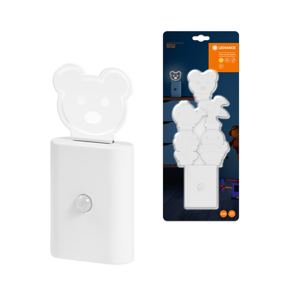 Lampki nocne z czujnikiem ruchu/dzień/noc, wiele obszarów zastosowań, zasilane bateryjnie. Cechy produktu: Czujnik ruchu PIR i czujnik światła. W zestawie wymienne motywy. Zalety produktu: Automatyczne włączanie i wyłączanie w zależności od ilości dostępnego światła dziennego. Oszczędna eksploatacja dzięki niskiemu poborowi mocy. Łatwy i szybki montaż prawie na każdej powierzchni (taśma samoprzylepna lub śruby). Wszystkie elementy do wygodnego montażu w zestawie. Obszary zastosowań: Kuchnie, przestrzenie robocze. Pokoje dziecięce. Światło nocne. Porady dotyczące bezpieczeństwa: Ten produkt nie jest zabawką. Nie powinien być pozostawiany bez nadzoru w rękach dzieci ani obsługiwany przez dzieci.. Nie jest przeznaczony do zastępowania tradycyjnego oświetlenia w gospodarstwach domowych.. Ostrzeżenie dotyczące baterii: Przechowywać poza zasięgiem dzieci. Połknięcie może prowadzić do oparzeń chemicznych, perforacji tkanek miękkich i śmierci. Ciężkie oparzenia mogą wystąpić w ciągu 2 godzin od połknięcia. Natychmiast zasięgnij porady lekarza. . Jeśli komora baterii (jeśli dotyczy) nie zamyka się bezpiecznie, zaprzestań używania produktu i trzymaj go z dala od dzieci. Jeśli podejrzewasz, że baterie mogły zostać połknięte lub umieszczone w jakiejkolwiek części ciała, natychmiast zwróć się o pomoc lekarską.. Prosimy unikać: Maksymalna temperatura otoczenia: +35 °C. Wymiana baterii na nieprawidłowy typ, który może obejść zabezpieczenie (na przykład w przypadku niektórych typów baterii litowych). Wysokość podczas pracy: 2000 m. Utylizacja baterii w ogniu lub gorącym piekarniku, lub mechaniczne zgniatanie lub cięcie baterii, co może spowodować wybuch..