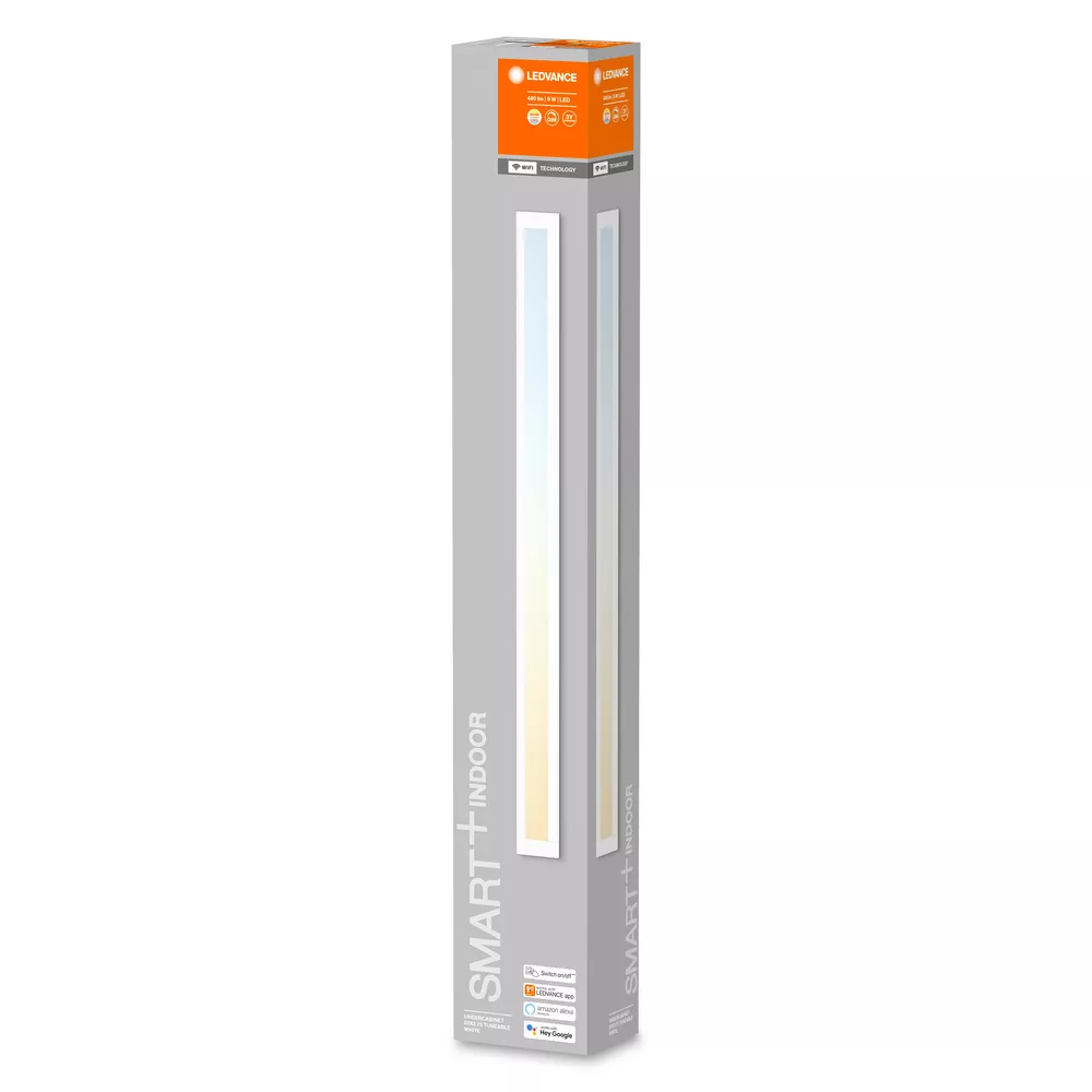 Slim Undercabinet oprawa podszafkowa z technologią WIFI. Cechy produktu: Możliwe różne kombinacje. Zapewnia funkcjonalne lub nastrojowe oświetlenie. Regulacja temperatury barwowej światła za pomocą pilota w zakresie Tunable White: 2700…6500 K. Ściemnialne. Dostępne w różnych rozmiarach: 50x3,75 cm, 45,7x6,5 cm, 60x6,5 cm. Oprawa o długości 50-cm z możliwością przedłużenia maksymalnie o dwie oprawy o długości 50 cm. Możliwość sterowania za pomocą głosu: Asystent Google lub Amazon Alexa. Protokół sieciowy: WiFi. Możliwość sterowania za pomocą aplikacji SMART+ (z systemem Android w wersji 8.0 lub iOS w wersji 14.0). Zalety produktu: Sterowanie bezprzewodowe za pomocą aplikacji lub głosu. Bardzo wąska budowa. Równomierny rozsył strumienia świetlnego. Łatwy i szybki montaż prawie na każdej powierzchni (taśma samoprzylepna lub śruby). Obszary zastosowań: Zastosowania wewnętrzne. Oświetlenie półek i oświetlenie podszafkowe. Kuchnie, przestrzenie robocze. Półki. Wyposażenie / Akcesoria: Sterowanie za pomocą aplikacji lub głosu wymaga kompatybilnego systemu sterowania domem inteligentnym. Wersja podstawowa zawiera przewód zasilający (2 m) i sterownik (5 cm). Dostępne długości: 30 i 50 cm. Przewody są wyposażone w złącze i przewód połączeniowy (10 cm). Zasilacz i sterownik nie są dostarczane w zestawie z przewodami. Do sterowania za pomocą aplikacji SMART+ wymagany jest smartfon lub tablet (z systemem Android minimum 8.0 lub iOS 14.0). Porady dotyczące bezpieczeństwa: Aby ograniczyć ryzyko uduszenia, elastyczne przewody PODŁĄCZONE do tej oprawy należy solidnie przymocować do ściany, jeśli znajdują się w zasięgu ręki..