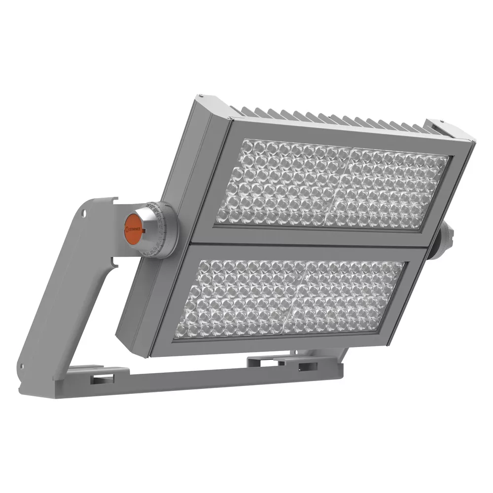 Naświetlacz dużej mocy do oświetlenia dużych powierzchni i oświetlenia sportowego, strumień świetlny do 82 klm. Cechy produktu: Modułowy naświetlacz o skuteczności świetlnej do 135 lm/W. Wspólna lub osobna instalacja z zasilaczem do Floodlight Max na odległość do 40 m. Dostępne z symetrycznym rozsyłem światła o kątach rozsyłu 10°, 30° i 60° oraz asymetrycznym rozsyłem światła 50°x110°. Klosz z hartowanego szkła o wysokim współczynniku przepuszczania światła. Zalety produktu: Bardzo efektywny, wytrzymały i trwały. Oszczędność energii do 45 % w porównaniu z oprawami oświetleniowymi wykorzystującymi konwencjonalne lampy wyładowcze. Łatwe ściemnianie do 50%. Brak górnego współczynnika rozsyłu światła (ULOR 0%) w przypadku zamontowania pod kątem 0°. Zoptymalizowana logistyka produktów, oprawy oświetleniowe i zasilacze do zamówienia osobno w osobnych opakowaniach. Niskie tętnienie światła. 5-letnia gwarancja. Obszary zastosowań: Zastosowania zewnętrzne (IP66). Oświetlenie dużych przestrzeni. Obiekty sportowe. Tereny budowy. Bezpośredni zamiennik opraw oświetleniowych wykorzystujących lampy wyładowcze. Wyposażenie / Akcesoria: Zasilacz nie wchodzi w skład zespołu zasilania głowicy oprawy. Zasilanie rekomendowanym zasilaczem 600W, GTIN (EAN) 4058075580718. Urządzenie w przygotowaniu. Osłona światła w przygotowaniu. Porady dotyczące bezpieczeństwa: Oprawy Floodlight Max muszą być zasilane wyłącznie przez dedykowane zasilacze, zgodnie z opisem w instrukcji obsługi.. Jeżeli dla opraw zainstalowanych na wysokości powyżej >3 m używany jest tylko jeden punkt mocowania, ze względów bezpieczeństwa konieczne jest dodatkowe mocowanie oprawy i wspornika (np. Linka ograniczająca).. Oprawę należy umieścić w taki sposób, aby nie powodować możliwości długotrwałego wpatrywania się w oprawę z odległości mniejszej niż 4 m.. Wszystkie podłączenia elektryczne muszą być wykonane przez osobę wykwalifikowaną.. Uwaga, ryzyko porażenia prądem.. Produkt w klasie ochrony I. Wszystkie przewodzące prąd, metalowe części obudowy, które mogą absorbować napięcie podczas pracy lub podczas konserwacji w przypadku awarii, muszą być stale PODŁĄCZONE do przewodu uziemiającego..