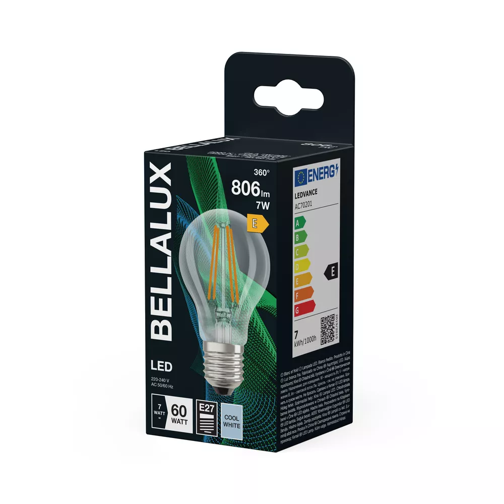 Lampy LED, klasyczny kształt żarówki. Cechy produktu: Lampy LED dla napięcia sieciowego. Brak możliwości regulacji strumienia świetlnego. Lampy niezawierające rtęci. Zalety produktu: Niższe zużycie energii w porównaniu do lamp żarowych lub halogenowych. Odporność na wstrząsy i drgania dzięki technologii LED. Brak promieniowania UV w wiązce światła. Natychmiast 100 % światła, bez czasu nagrzewania. Łatwy montaż zamiast zwykłych żarówek. Niskie obciążenie cieplne (w porównaniu ze standardowym produktem referencyjnym). Obszary zastosowań: Zastosowania domowe. Oświetlenie ogólne. Eksploatacja na zewnątrz wyłącznie w oprawach zewnętrznych (co najmniej IP65). Porady dotyczące bezpieczeństwa: Nie dotykaj lampy, jeśli jest stłuczona.. Nie wolno używać, jeśli zewnętrzne źródło światła jest uszkodzone..