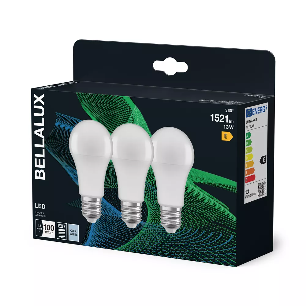 Lampy LED, klasyczny kształt żarówki. Cechy produktu: Lampy LED dla napięcia sieciowego. Brak możliwości regulacji strumienia świetlnego. Lampy niezawierające rtęci. Zalety produktu: Niższe zużycie energii w porównaniu do lamp żarowych lub halogenowych. Odporność na wstrząsy i drgania dzięki technologii LED. Brak promieniowania UV w wiązce światła. Natychmiast 100 % światła, bez czasu nagrzewania. Łatwy montaż zamiast zwykłych żarówek. Niskie obciążenie cieplne (w porównaniu ze standardowym produktem referencyjnym). Obszary zastosowań: Zastosowania domowe. Oświetlenie ogólne. Eksploatacja na zewnątrz wyłącznie w oprawach zewnętrznych (co najmniej IP65). Porady dotyczące bezpieczeństwa: Nie dotykaj lampy, jeśli jest stłuczona.. Nie wolno używać, jeśli zewnętrzne źródło światła jest  uszkodzone..