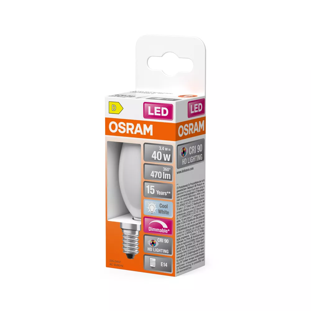 Ściemnialne lampy LED, kształt żarówki świecowej. Cechy produktu: Lampy LED dla napięcia sieciowego. Kąt wiązki światła: do 300°. Ściemnialne. Wskaźnik oddawania barw Ra: ≥ 90. Zalety produktu: Lampy wyposażone w innowacyjną technologię „włókien” LED. Wygląd, wymiary i strumień świetlny porównywalne z żarówkami halogenowymi. Widmo światła naturalnego z doskonałym wskaźnikiem oddawania barw Ra > 90. Znacznie zmniejszony zakres niebieskiego światła. Poprawiony komfort widzenia i zmniejszone zmęczenie wzroku. Niższe zużycie energii w porównaniu do lamp żarowych lub halogenowych. Natychmiast 100 % światła, bez czasu nagrzewania. Niskie tętnienie światła. Obszary zastosowań: Doskonałe rozwiązanie do instalacji dekoracyjnych. Zastosowania domowe. Oświetlenie ogólne. Do użytku na zewnątrz tylko w odpowiednich oprawach zewnętrznych. Porady dotyczące bezpieczeństwa: Nie dotykaj lampy, jeśli jest stłuczona.. Nie wolno używać, jeśli zewnętrzne źródło światła jest uszkodzone..