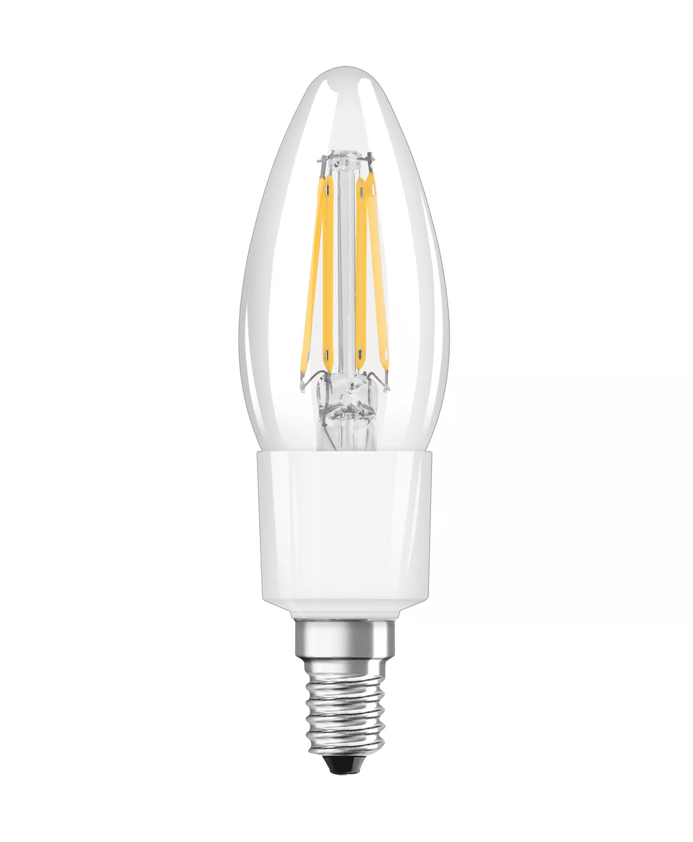 Klasyczny kształt żarówki świecowej z technologią WiFi. Cechy produktu: Sterowanie za pomocą aplikacji LEDVANCE SMART+ (z systemem Android™️ co najmniej 8.0 lub iOS 14.0). Możliwość sterowania przez Asystenta Google i Amazon Alexa. Protokół sieciowy: WiFi. Ściemnialne. Trwałość do 15 000 h. Barwa światła: Ciepłobiała (2700 K). Zalety produktu: Sterowanie bezprzewodowe za pomocą aplikacji. Łatwy montaż i użycie. Nie zawiera rtęci. Niższe zużycie energii w porównaniu do lamp żarowych lub halogenowych. Obszary zastosowań: Oświetlenie ogólne. Pomieszczenia mieszkalne. Zastosowania profesjonalne (hotele, bary, butiki itp.). Do użytku na zewnątrz tylko w odpowiednich oprawach zewnętrznych. Wyposażenie / Akcesoria: Do sterowania za pomocą aplikacji LEDVANCE SMART+ wymagany jest smartfon lub tablet (z systemem Android co najmniej 8.0 lub iOS 14.0). Porady dotyczące bezpieczeństwa: Nie dotykaj lampy, jeśli jest stłuczona.. Nie wolno używać, jeśli zewnętrzne źródło światła jest uszkodzone..