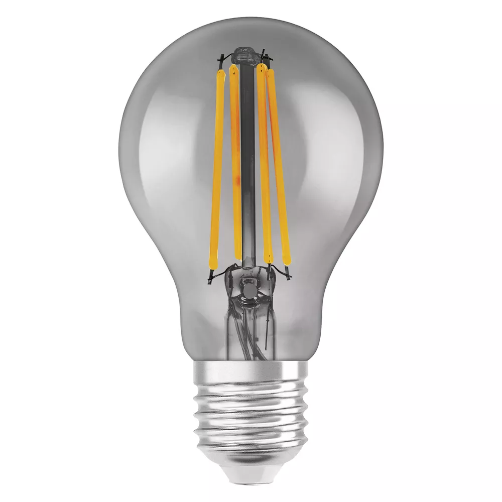 Klasyczny kształt żarówki z technologią WiFi. Cechy produktu: Sterowanie za pomocą aplikacji LEDVANCE SMART+ (z systemem Android™️ co najmniej 8.0 lub iOS 14.0). Możliwość sterowania przez Asystenta Google i Amazon Alexa. Protokół sieciowy: WiFi. Ściemnialne. Trwałość do 15 000 h. Barwa światła: Ciepłobiała (2700 K). Zalety produktu: Sterowanie bezprzewodowe za pomocą aplikacji. Łatwy montaż i użycie. Nie zawiera rtęci. Niższe zużycie energii w porównaniu do lamp żarowych lub halogenowych. Obszary zastosowań: Oświetlenie ogólne. Pomieszczenia mieszkalne. Zastosowania profesjonalne (hotele, bary, butiki itp.). Do użytku na zewnątrz tylko w odpowiednich oprawach zewnętrznych. Wyposażenie / Akcesoria: Do sterowania za pomocą aplikacji LEDVANCE SMART+ wymagany jest smartfon lub tablet (z systemem Android co najmniej 8.0 lub iOS 14.0). Porady dotyczące bezpieczeństwa: Nie dotykaj lampy, jeśli jest stłuczona.. Nie wolno używać, jeśli zewnętrzne źródło światła jest uszkodzone..