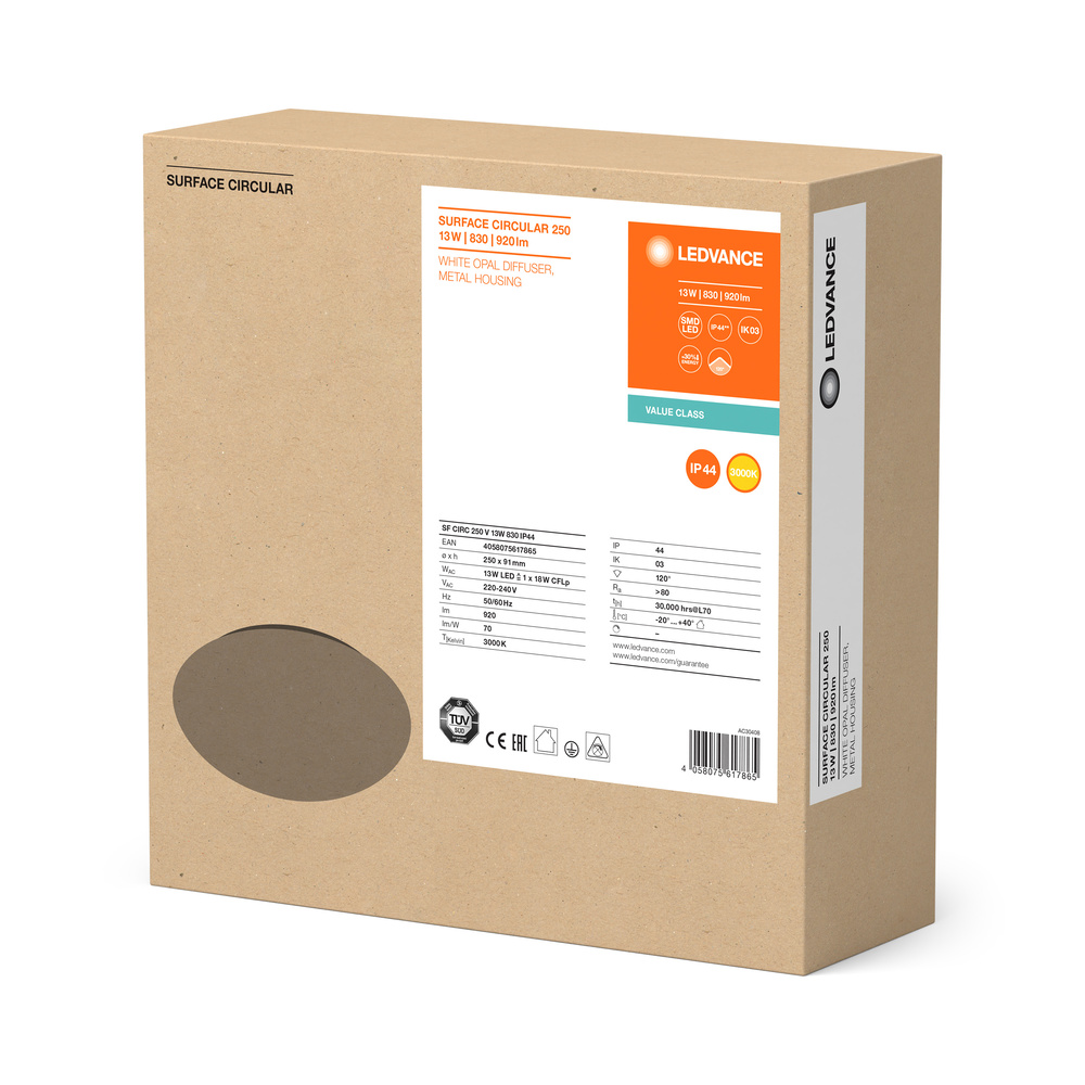 Oprawy ścienne i sufitowe o stopniu ochrony IP44. Cechy produktu: Stopień ochrony: IP44 (montaż na suficie), IP20 (montaż na ścianie). Odporność na udar: IK03. Obudowa z metalu, klosz z PMMA. Temperatura otoczenia podczas pracy: -20…+40°C. Tylko do użytku wewnętrznego nie nadaje się do zastosowania na zewnątrz. Zalety produktu: Oprawa wewnętrzna o wysokiej skuteczności świetlnej. Oszczędność energii do 55 % w porównaniu z oprawami świetlówkowymi. Łatwa i szybka instalacja. Bardzo jednorodne światło. 3-letnia gwarancja. Obszary zastosowań: Korytarze. Schody. Łazienki. Hole. Wyposażenie / Akcesoria: Dostępny zamienny opcjonalny klosz.