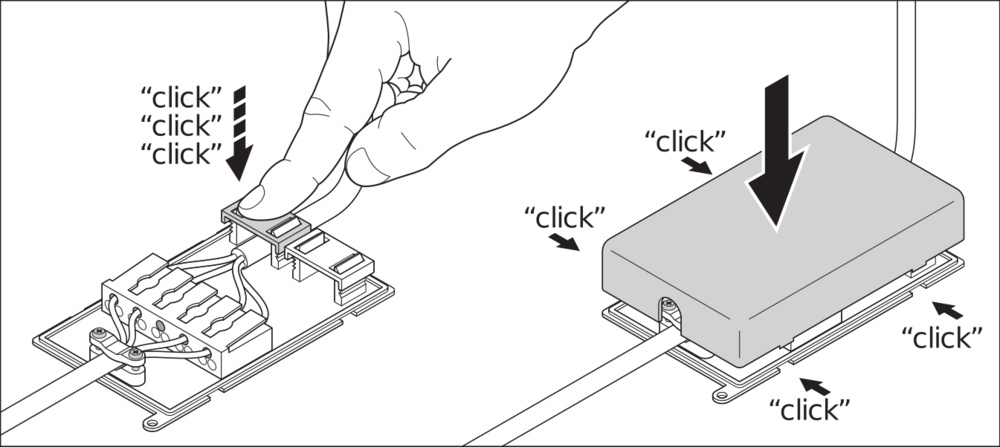 Złącza opraw do wbudowania. Cechy produktu: W zestawie znajduje się 5-biegunowe złącze. Do zastosowania w oprawach o II klasie ochronności. Nadaje się do wpuszczanych opraw DALI (wersja L/N/E/D+/D-). Zalety produktu: Instalacja elektryczna bez użycia narzędzi za pomocą wtyków. Możliwe wewnętrzne okablowanie dzięki dostarczonej w zestawie puszce podłączeniowej.