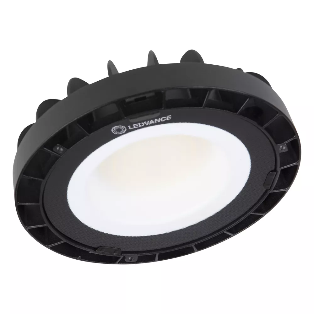 Oprawy oświetleniowe typu High Bay, skuteczność świetlna do 120 lm/W. Cechy produktu: Zakres temperatury pracy: -20…45 °C. Czarna aluminiowa obudowa, szkło hartowane. Opalizowana osłona. Stopień ochrony: IP65. Trwałość (L70): do 50 000 h. Wysoka skuteczność świetlna: do 120 lm/W. Zalety produktu: Nowoczesne, ekskluzywne wzornictwo. Oszczędność energii do 60 % w porównaniu z konwencjonalnymi oprawami oświetleniowymi typu High Bay. Zoptymalizowana masa i rozmiary dzięki kompaktowej konstrukcji. Obszary zastosowań: Bezpośredni zamiennik opraw oświetleniowych typu High Bay do lamp rtęciowych lub metalohalogenkowych. Domy towarowe. Hale logistyczne. Przemysł. Wysokie pomieszczenia (np.: centra handlowe, lotniska, budynki komercyjne, hole). Wyposażenie / Akcesoria: Dostępne zaciski. Dostępny reflektor.