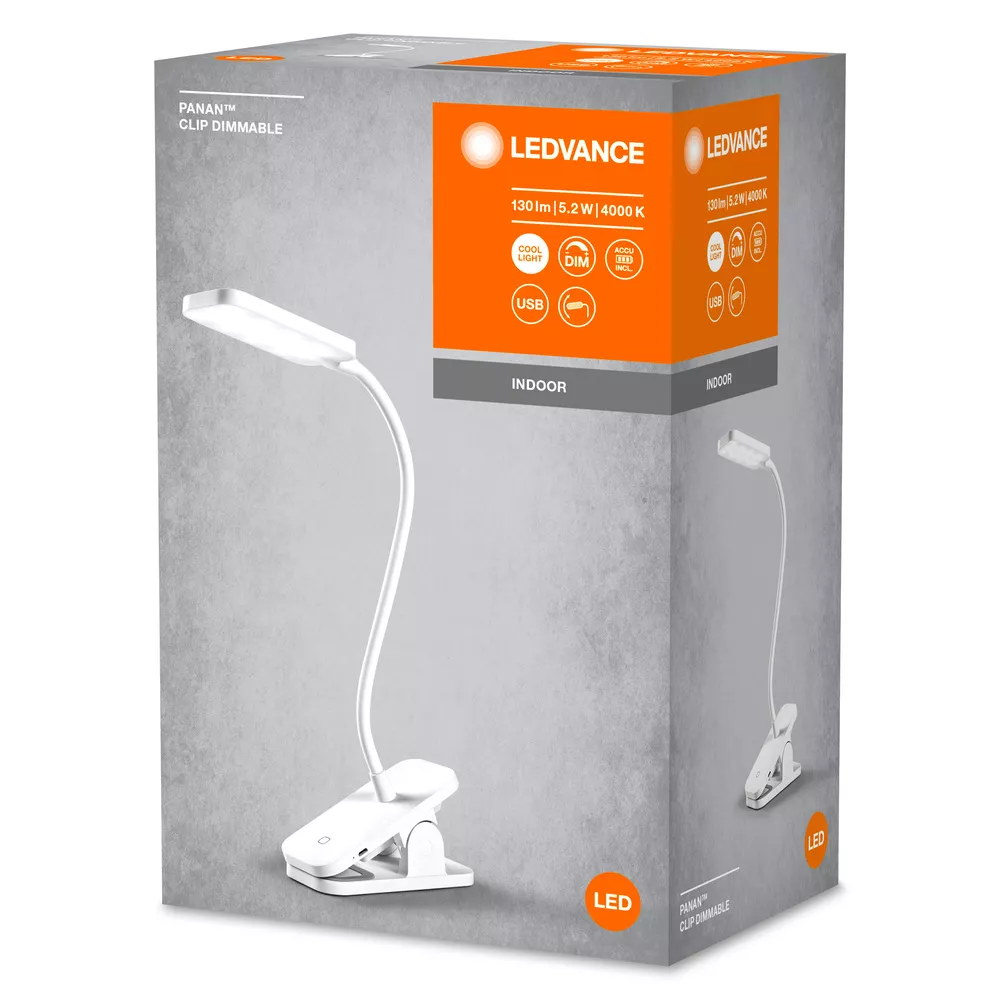 Mobilna oprawa stołowa z płynnym ściemnianiem i mocowaniem zaciskowym. Cechy produktu: Zintegrowana bateria litowa, którą można ładować poprzez przewód USB. Temperatura barwowa: 4000 K. Wybór natężenia oświetlenia za pomocą przełącznika dotykowego. Można go złożyć i zgiąć pod kątem 180°, aby uzyskać maksymalną elastyczność. Zalety produktu: Atrakcyjny wygląd i funkcjonalna konstrukcja. Możliwość łatwego przenoszenia w miejsca wymagające oświetlenia dzięki zasilaniu bateryjnemu. Mechanizm zaciskowy umożliwia łatwe mocowanie oprawy oświetleniowej do różnego rodzaju mebli. Wyginane ramię oprawy oświetleniowej umożliwia ustawienie źródła światła w dowolnym kierunku. Przełączanie i bezstopniowe przyciemnianie za pomocą dotykowego czujnika w postawie oprawie oświetleniowej. Obszary zastosowań: Sypialnie, gabinety. Salony. Eksploatacja tylko w pomieszczeniach. Wyposażenie / Akcesoria: Przewód USB. Porady dotyczące bezpieczeństwa: Aby ograniczyć ryzyko uduszenia, elastyczne przewody PODŁĄCZONE do tej oprawy należy solidnie przymocować do ściany, jeśli znajdują się w zasięgu ręki.. Ostrzeżenie dotyczące baterii: Przechowywać poza zasięgiem dzieci. Połknięcie może prowadzić do oparzeń chemicznych, perforacji tkanek miękkich i śmierci. Ciężkie oparzenia mogą wystąpić w ciągu 2 godzin od połknięcia. Natychmiast zasięgnij porady lekarza. . Jeśli komora baterii (jeśli dotyczy) nie zamyka się bezpiecznie, zaprzestań używania produktu i trzymaj go z dala od dzieci. Jeśli podejrzewasz, że baterie mogły zostać połknięte lub umieszczone w jakiejkolwiek części ciała, natychmiast zwróć się o pomoc lekarską.. Prosimy unikać: Maksymalna temperatura otoczenia: +35 °C. Wymiana baterii na nieprawidłowy typ, który może obejść zabezpieczenie (na przykład w przypadku niektórych typów baterii litowych). Wysokość podczas pracy: 2000 m. Utylizacja baterii w ogniu lub gorącym piekarniku, lub mechaniczne zgniatanie lub cięcie baterii, co może spowodować wybuch..