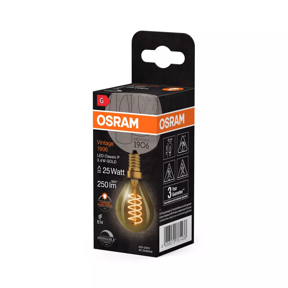 Lampa VINTAGE 1906 CL P Filament szkło przezroczyste GOLD 25 dim 3,4W 824 E14