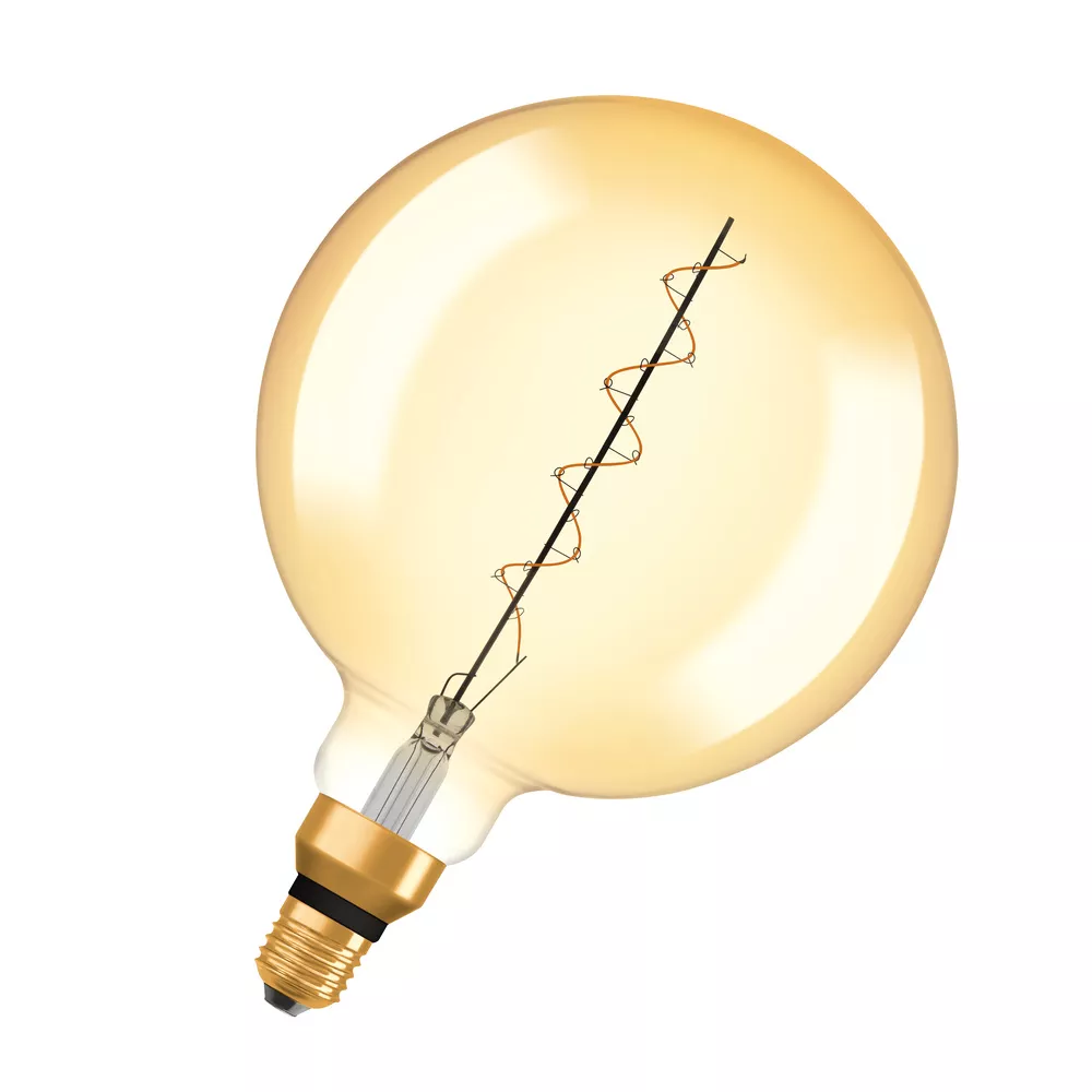 Ściemniane lampy LED , edycja vintage, klasyczny kształt kuli z technologią LED typu slim . Cechy produktu: Lampy LED dla napięcia sieciowego. Lampa wykonana ze szkła. Trwałość do 15 000 h. Kąt wiązki światła: do 360°. Ściemnialne. Dobra jakość światła, wskaźnik oddawania barw Ra: ≥ 80; stała chromatyczność. Może być używana bezpośrednio jako oprawa oświetleniowa. Cieńsze włókno, lepszy efekt dekoracyjny. Zalety produktu: Niższe zużycie energii w porównaniu do lamp żarowych lub halogenowych. Natychmiast 100 % światła, bez czasu nagrzewania. Łatwy montaż zamiast zwykłych żarówek. Lampy wykorzystujące innowacyjną technologię LED „slim-filament”.. Spiralne cienkie włókno o średnicy φ0,6mm. Prosta, długa, wąska - szerokość włókna: minimum 0,7mm. Obszary zastosowań: Doskonałe rozwiązanie do instalacji dekoracyjnych. Zastosowania domowe. Oświetlenie ogólne. Do użytku na zewnątrz tylko w odpowiednich oprawach zewnętrznych. Porady dotyczące bezpieczeństwa: Nie dotykaj lampy, jeśli jest stłuczona.. Nie wolno używać, jeśli zewnętrzne źródło światła jest uszkodzone..