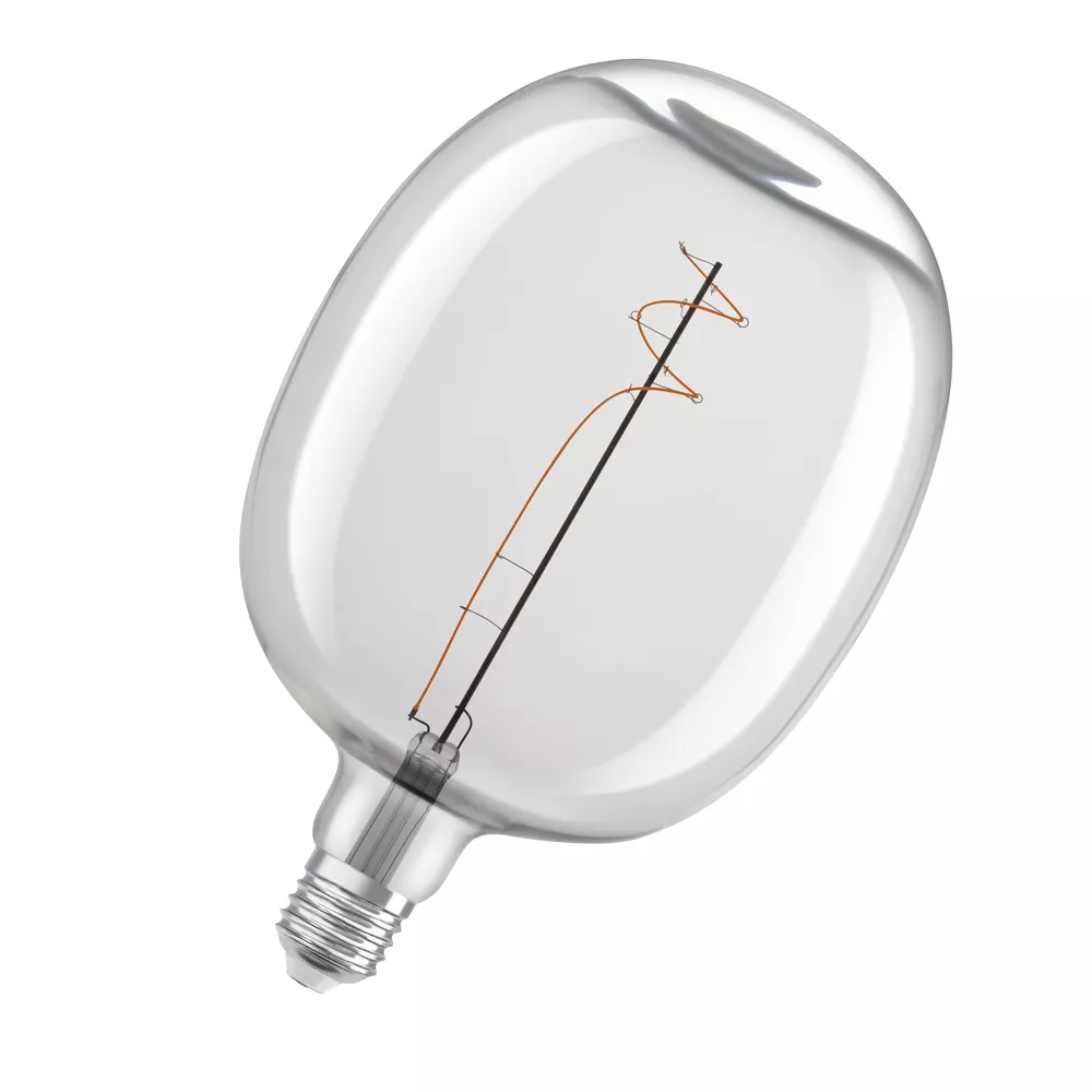 Dimmable LED lamps, vintage edition, special bulb shape. Cechy produktu: Lampy LED dla napięcia sieciowego. Lampa wykonana ze szkła. Trwałość do 15 000 h. Kąt wiązki światła: do 360°. Ściemnialne. Dobra jakość światła, wskaźnik oddawania barw Ra: ≥ 80; stała chromatyczność. Może być używana bezpośrednio jako oprawa oświetleniowa. Zalety produktu: Niższe zużycie energii w porównaniu do lamp żarowych lub halogenowych. Natychmiast 100 % światła, bez czasu nagrzewania. Łatwy montaż zamiast zwykłych żarówek. Dostępne różne kształty i średnice baniek. Obszary zastosowań: Doskonałe rozwiązanie do instalacji dekoracyjnych. Zastosowania domowe. Oświetlenie ogólne. Do użytku na zewnątrz tylko w odpowiednich oprawach zewnętrznych. Porady dotyczące bezpieczeństwa: Nie dotykaj lampy, jeśli jest stłuczona.. Nie wolno używać, jeśli zewnętrzne źródło światła jest uszkodzone..