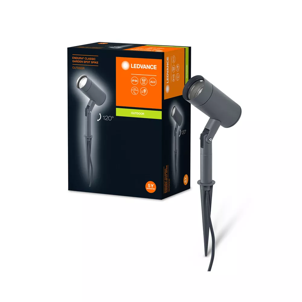 Outdoor Endura Classic Garden spot spike z oprawką GU10. Cechy produktu: Obudowa z odlewu ciśnieniowego aluminium. Regulowana głowica oprawy oświetleniowej. Zalety produktu: Wysoka uniwersalność wyboru źródła światła dzięki trzonkowi GU10. Łatwa i szybka instalacja. Materiały wysokiej jakości. Obszary zastosowań: Oświetlenie awaryjne. Patia, balkony. Elewacje budynków. Wyposażenie / Akcesoria: Kompletne akcesoria do montażu i podłączenia w zestawie. Źródła światła nie są dostarczane w zestawie. Porady dotyczące bezpieczeństwa: Wszystkie podłączenia elektryczne muszą być wykonane przez osobę wykwalifikowaną.. Uwaga, ryzyko porażenia prądem.. Produkt w klasie ochrony I. Wszystkie przewodzące prąd, metalowe części obudowy, które mogą absorbować napięcie podczas pracy lub podczas konserwacji w przypadku awarii, muszą być stale PODŁĄCZONE do przewodu uziemiającego..