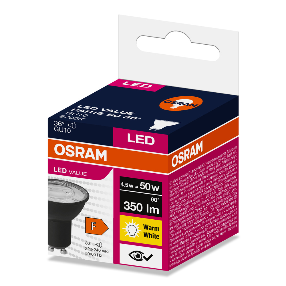 Lampa LED VALUE PAR16 50 36 4,5W/827 230V GU10 BK