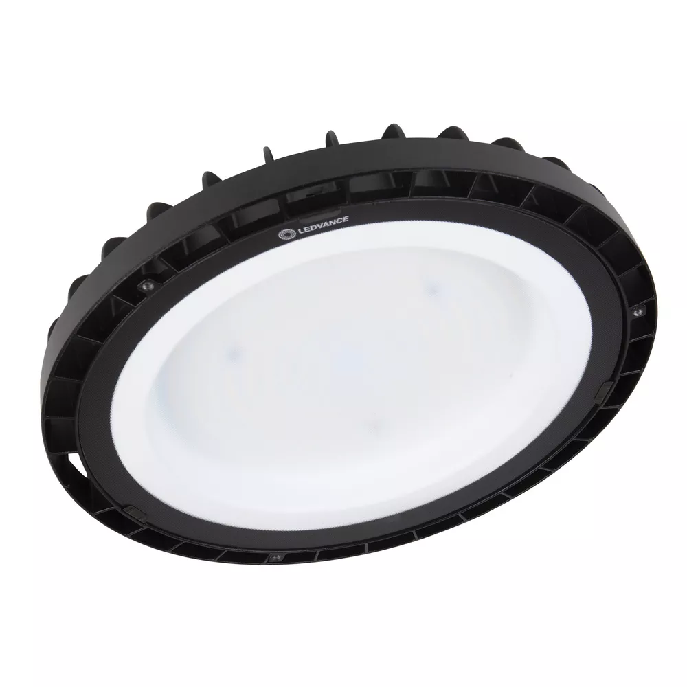 Oprawy oświetleniowe typu High Bay, skuteczność świetlna do 120 lm/W. Cechy produktu: Zakres temperatury pracy: -20…45 °C. Czarna aluminiowa obudowa, szkło hartowane. Opalizowana osłona. Stopień ochrony: IP65. Trwałość (L70): do 50 000 h. Wysoka skuteczność świetlna: do 120 lm/W. Zalety produktu: Nowoczesne, ekskluzywne wzornictwo. Oszczędność energii do 60 % w porównaniu z konwencjonalnymi oprawami oświetleniowymi typu High Bay. Zoptymalizowana masa i rozmiary dzięki kompaktowej konstrukcji. Obszary zastosowań: Bezpośredni zamiennik opraw oświetleniowych typu High Bay do lamp rtęciowych lub metalohalogenkowych. Domy towarowe. Hale logistyczne. Przemysł. Wysokie pomieszczenia (np.: centra handlowe, lotniska, budynki komercyjne, hole). Wyposażenie / Akcesoria: Dostępne zaciski. Dostępny reflektor.