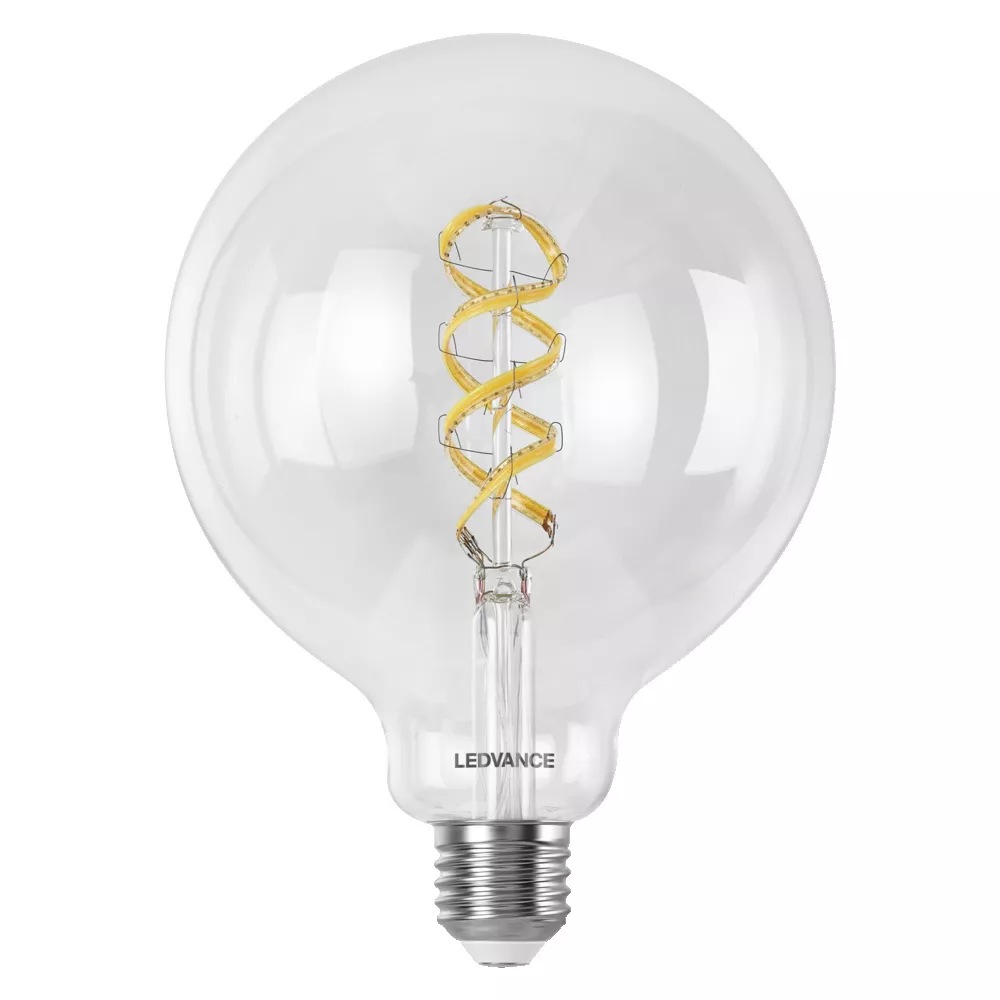 Kształt Classic Globe z technologią "żarników LED" z technologią WiFi. Cechy produktu: Możliwość sterowania za pomocą aplikacji LEDVANCE SMART+ (z systemem Android co najmniej 8.0 lub iOS 14.0). Regulacja temperatury barwowej światła: 2700…6500 K. Sterowanie kolorami RGB. Ściemnialne. Protokół sieciowy: WiFi. Trwałość do 15 000 h. Sterowanie głosowe działa z Hej Google lub Alexa. Zalety produktu: Sterowanie bezprzewodowe za pomocą aplikacji. Łatwy montaż i użycie. Nie zawiera rtęci. Niższe zużycie energii w porównaniu do lamp żarowych lub halogenowych. Obszary zastosowań: Oświetlenie ogólne. Pomieszczenia mieszkalne. Zastosowania profesjonalne (hotele, bary, butiki itp.). Zastosowania zewnętrzne - tylko w odpowiednich oprawach. Wyposażenie / Akcesoria: Do sterowania za pomocą aplikacji LEDVANCE SMART+ wymagany jest smartfon lub tablet (z systemem Android co najmniej 8.0 lub iOS 14.0). Porady dotyczące bezpieczeństwa: Nie dotykaj lampy, jeśli jest stłuczona..