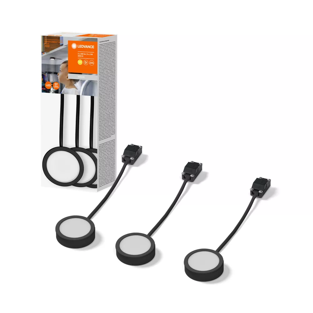 Podszafkowa oprawa punktowa o okrągłym kształcie. Cechy produktu: Nowoczesny design. Barwa światła: Warm White (ciepłobiała). Zalety produktu: Oprawy reflektorowe do oświetlenia podszafkowego. Obszary zastosowań: Kuchnie. Pomieszczenia codziennego użytku. Oświetlenie pod szafkami. Wyposażenie / Akcesoria: Śruby i kołki montażowe dostarczone w zestawie. Porady dotyczące bezpieczeństwa: Wszystkie podłączenia elektryczne muszą być wykonane przez osobę wykwalifikowaną.. Uwaga, ryzyko porażenia prądem.. Oprawy nie nadają się do pokrywania materiałem termoizolacyjnym..