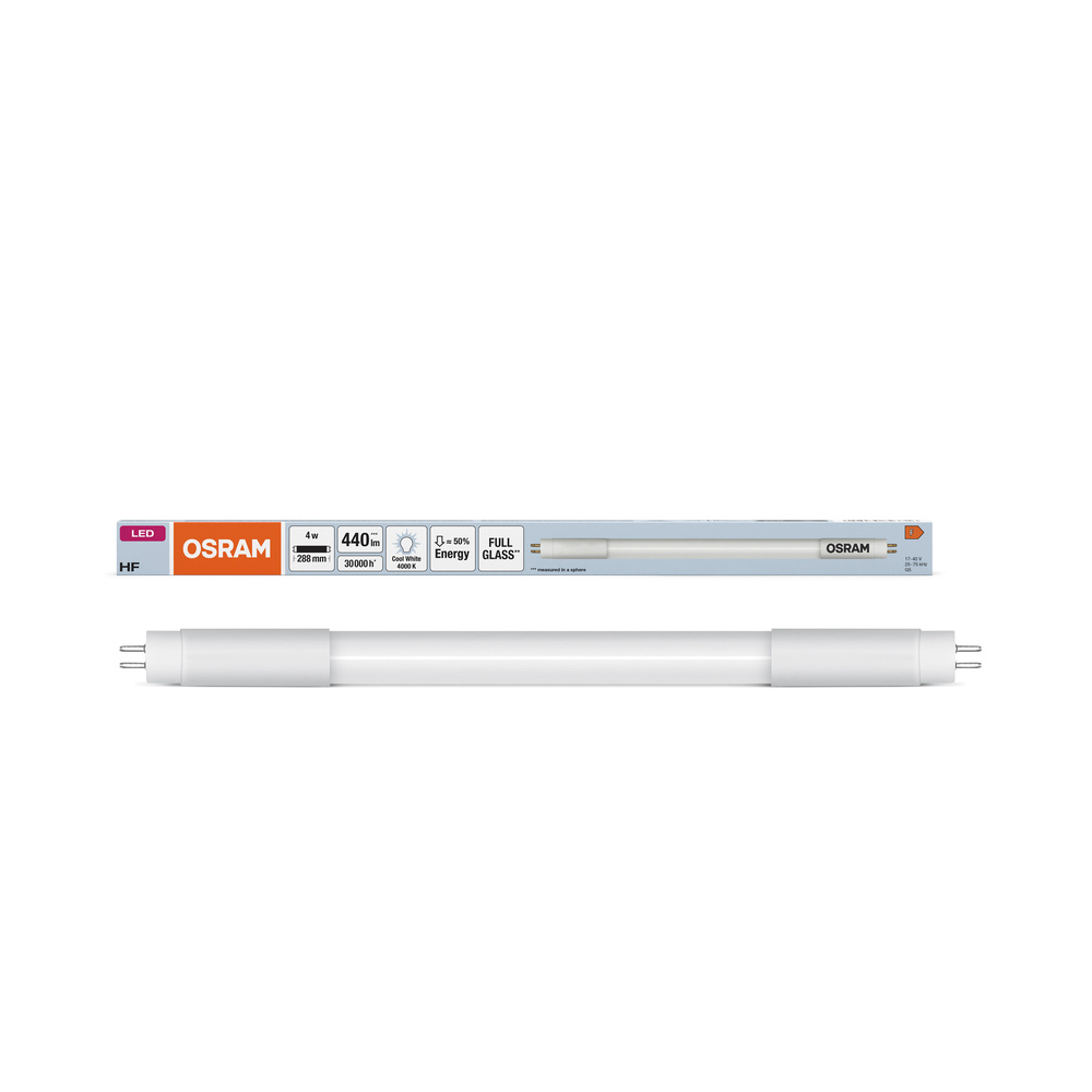 Tuby LED do zasilania przez elektroniczny statecznik . Cechy produktu: Zamiennik świetlówek liniowych T5 w instalacjach ze statecznikami elektronicznymi. Tuba LED wykonana ze szkła z zabezpieczeniem przed odpryskami. Wysoka jedorodność barw: ≤ 5 sdcm. Trwałość: do 30 000 h. Niskie tętnienie światła zgodnie z UE 2019/2020 (SVM ≤ 0,4 / PstLM ≤ 1). Stopień ochrony: IP20. Kompatybilność z popularnymi statecznikami elektronicznymi (patrz również compatibility list). Zalety produktu: Lampa nie ugina się dzięki rurce wykonanej ze szkła. Szybka, prosta i bezpieczna wymiana bez zmiany okablowania. Nadaje się również do pracy w niskich temperaturach. Prosimy o przestrzeganie wszystkich zaleceń dotyczących bezpieczeństwa. Obszary zastosowań: Oświetlenie ogólne – dla temperatur otoczenia w zakresie -20…+45 °C. Budynki publiczne. Kuchnie. Oświetlenie pod szafkami. Porady prawne: W przypadku zastąpienia świetlówki T5 całkowita efektywność energetyczna i rozsył światła zależą od projektu systemu oświetleniowego.. Porady dotyczące bezpieczeństwa: Możliwa praca w zastosowaniach zewnętrznych w odpowiednich oprawach odpornych na wilgoć zgodnie z kartą katalogową i instrukcją instalacji.. Zakres temperatur pracy tub LED jest ograniczony. W przypadku wątpliwości, należy zmierzyć temperaturę w punkcie Tc oznaczonym na lampie w celu weryfikacji.. Nie nadaje się do oświetlenia awaryjnego..