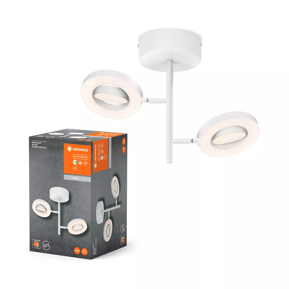 Oprawy sufitowe z regulowanymi reflektorami punktowymi i możliwością wyboru temperatury barwowej światła za pomocą przełącznika naściennego. Cechy produktu: Rodzina opraw obejmuje cztery wersje z maksymalnie 3 głowicami punktowymi. Wersja Click-CCT: zmian temperatury barwowej światła, regulowana w trzech krokach poprzez wielokrotne przełączanie. Włącznik/wyłącznik w wersji 1-głowicowej dla łatwej obsługi. Regulowane oprawy. Zalety produktu: Wysokiej jakości obudowa o białej lub czarnej matowej powierzchni. Łatwy montaż. Obszary zastosowań: Zastosowania wewnętrzne. Korytarze, wejścia, klatki schodowe, pokoje dzienne, sutereny. Kuchnie, przestrzenie robocze. Montaż powierzchniowy na suficie i ścianach. Wyposażenie / Akcesoria: Kompletne akcesoria do montażu i podłączenia w zestawie. Porady dotyczące bezpieczeństwa: Wszystkie podłączenia elektryczne muszą być wykonane przez osobę wykwalifikowaną.. Uwaga, ryzyko porażenia prądem.. Sprawdź przydatność ściany i sufitu. Jeśli nie jesteś pewien, zasięgnij profesjonalnej porady..