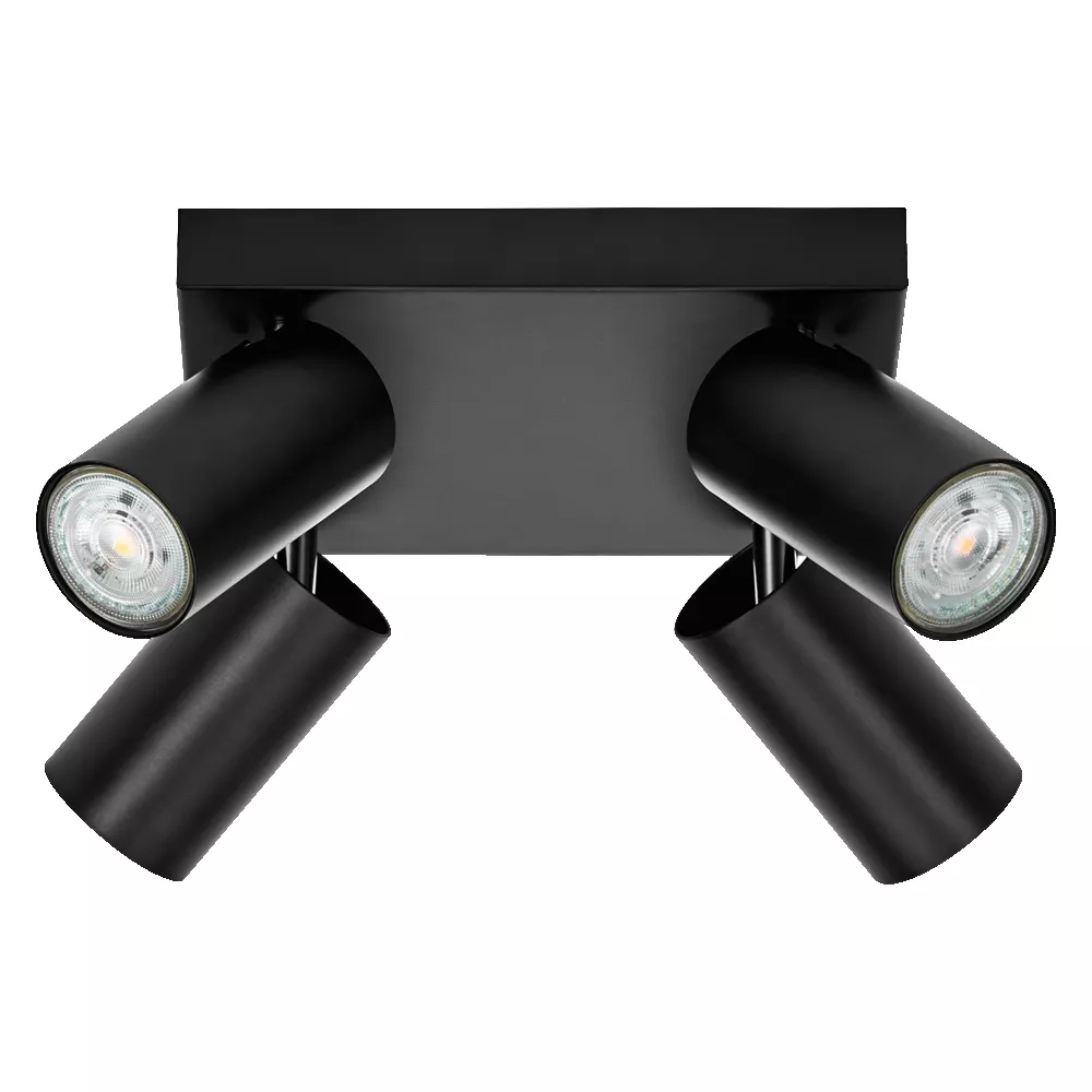 Oprawy sufitowe z regulowanymi, ściemnialnymi reflektorami GU10. Cechy produktu: Rodzina opraw obejmuje pięć wersji z maksymalnie 4 głowicami punktowymi. Regulowane oprawy. Zalety produktu: Ponadczasowa stylistyka. Wysokiej jakości obudowa o białej lub czarnej matowej powierzchni. Uniwersalne rozwiązanie dzięki wymiennym lampom LED. W zestawie ściemniana lampa OSRAM. Łatwy montaż. Obszary zastosowań: Zastosowania wewnętrzne. Korytarze, wejścia, klatki schodowe, pokoje dzienne, sutereny. Kuchnie, przestrzenie robocze. Montaż powierzchniowy na suficie i ścianach. Wyposażenie / Akcesoria: Kompletne akcesoria do montażu i podłączenia w zestawie. Porady dotyczące bezpieczeństwa: Wszystkie podłączenia elektryczne muszą być wykonane przez osobę wykwalifikowaną.. Uwaga, ryzyko porażenia prądem.. Produkt w klasie ochrony I. Wszystkie przewodzące prąd, metalowe części obudowy, które mogą absorbować napięcie podczas pracy lub podczas konserwacji w przypadku awarii, muszą być stale PODŁĄCZONE do przewodu uziemiającego..