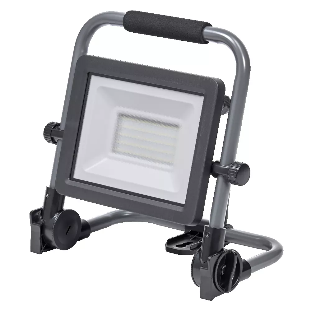 Elastyczny, przenośny reflektor roboczy. Cechy produktu: Oprawa robocza z odchylaną głowicą. Rodzaj ochrony, głowica oprawy i obudowa: IP65/IP54, Rodzaj ochrony, wtyk: IP44. Kompaktowy stojak. Zalety produktu: Przenośna oprawa robocza do elastycznych zastosowań. Obszary zastosowań: Renowacja. Garaże. Warsztaty. Piwnice. Wyposażenie / Akcesoria: Przewód zasilający o długości 1,5 m zapewnia elastyczną instalację. Porady dotyczące bezpieczeństwa: Produkt w klasie ochrony I. Wszystkie przewodzące prąd, metalowe części obudowy, które mogą absorbować napięcie podczas pracy lub podczas konserwacji w przypadku awarii, muszą być stale PODŁĄCZONE do przewodu uziemiającego..