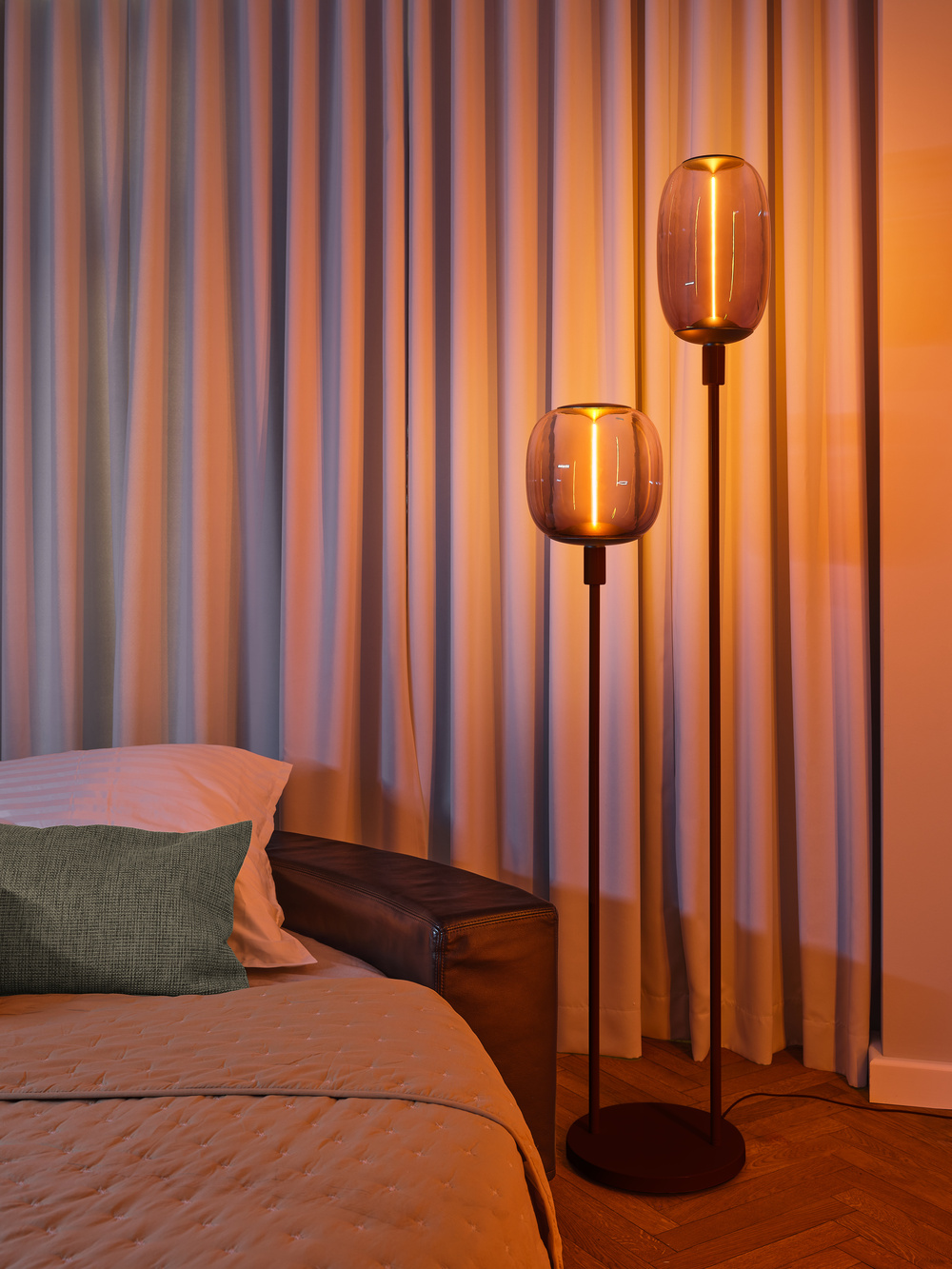 Dekoracyjne oprawy podłogowe z oprawką E27. Cechy produktu: Nowoczesny minimalistyczny design. Szczególny urok vintage w połączeniu z lampami z 1906 roku. Obsługiwany nożnie wyłącznik zasilania znajdujący się na przewodzie. Zalety produktu: Indywidualne scenariusze świetlne dzięki połączeniu z lampą dekoracyjną. Wysoka jakość . Obszary zastosowań: Pomieszczenia prywatne (pokoje dzienne, jadalnie, sypialnie itp.). Porady dotyczące bezpieczeństwa: Aby ograniczyć ryzyko uduszenia, elastyczne przewody PODŁĄCZONE do tej oprawy należy solidnie przymocować do ściany, jeśli znajdują się w zasięgu ręki..