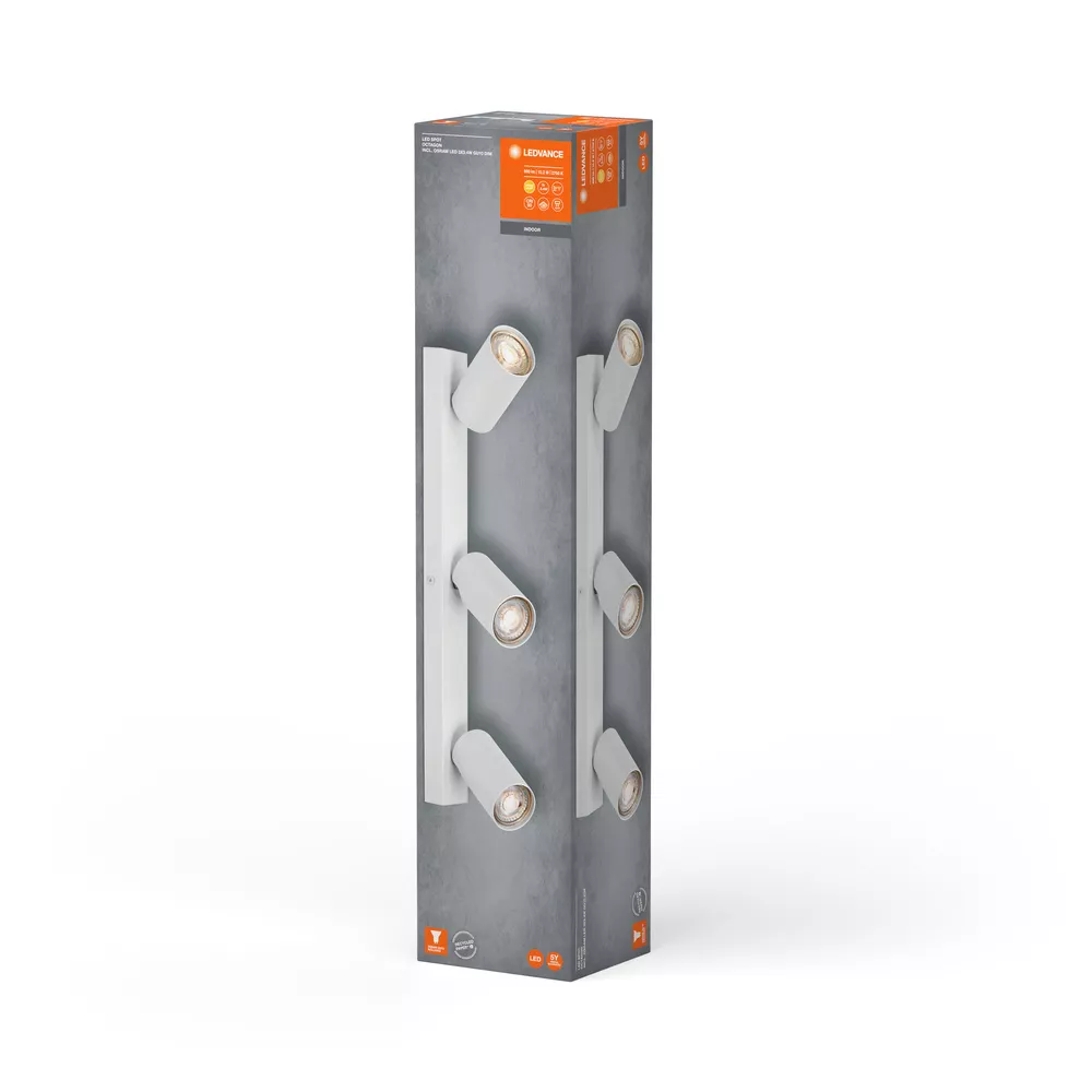 Oprawy sufitowe z regulowanymi, ściemnialnymi reflektorami GU10. Cechy produktu: Rodzina opraw obejmuje pięć wersji z maksymalnie 4 głowicami punktowymi. Regulowane oprawy. Zalety produktu: Ponadczasowa stylistyka. Wysokiej jakości obudowa o białej lub czarnej matowej powierzchni. Uniwersalne rozwiązanie dzięki wymiennym lampom LED. W zestawie ściemniana lampa OSRAM. Łatwy montaż. Obszary zastosowań: Zastosowania wewnętrzne. Korytarze, wejścia, klatki schodowe, pokoje dzienne, sutereny. Kuchnie, przestrzenie robocze. Montaż powierzchniowy na suficie i ścianach. Wyposażenie / Akcesoria: Kompletne akcesoria do montażu i podłączenia w zestawie. Porady dotyczące bezpieczeństwa: Wszystkie podłączenia elektryczne muszą być wykonane przez osobę wykwalifikowaną.. Uwaga, ryzyko porażenia prądem.. Produkt w klasie ochrony I. Wszystkie przewodzące prąd, metalowe części obudowy, które mogą absorbować napięcie podczas pracy lub podczas konserwacji w przypadku awarii, muszą być stale PODŁĄCZONE do przewodu uziemiającego..