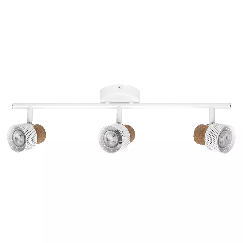 Oprawy sufitowe wykonane z materiałów mieszanych z regulowanymi, ściemnialnymi reflektorami GU10. Cechy produktu: Rodzina opraw obejmuje pięć wersji z maksymalnie 4 głowicami punktowymi. Materiał obudowy: metal i korek. Regulowane oprawy. Zalety produktu: Uniwersalne rozwiązanie dzięki wymiennym lampom LED. Wysokiej jakości obudowa o białej lub czarnej matowej powierzchni. W zestawie ściemniana lampa OSRAM. Łatwy montaż. Obszary zastosowań: Zastosowania wewnętrzne. Korytarze, wejścia, klatki schodowe, pokoje dzienne, sutereny. Kuchnie, przestrzenie robocze. Montaż powierzchniowy na suficie i ścianach. Wyposażenie / Akcesoria: Kompletne akcesoria do montażu i podłączenia w zestawie. Porady dotyczące bezpieczeństwa: Wszystkie podłączenia elektryczne muszą być wykonane przez osobę wykwalifikowaną.. Uwaga, ryzyko porażenia prądem.. Produkt w klasie ochrony I. Wszystkie przewodzące prąd, metalowe części obudowy, które mogą absorbować napięcie podczas pracy lub podczas konserwacji w przypadku awarii, muszą być stale PODŁĄCZONE do przewodu uziemiającego..