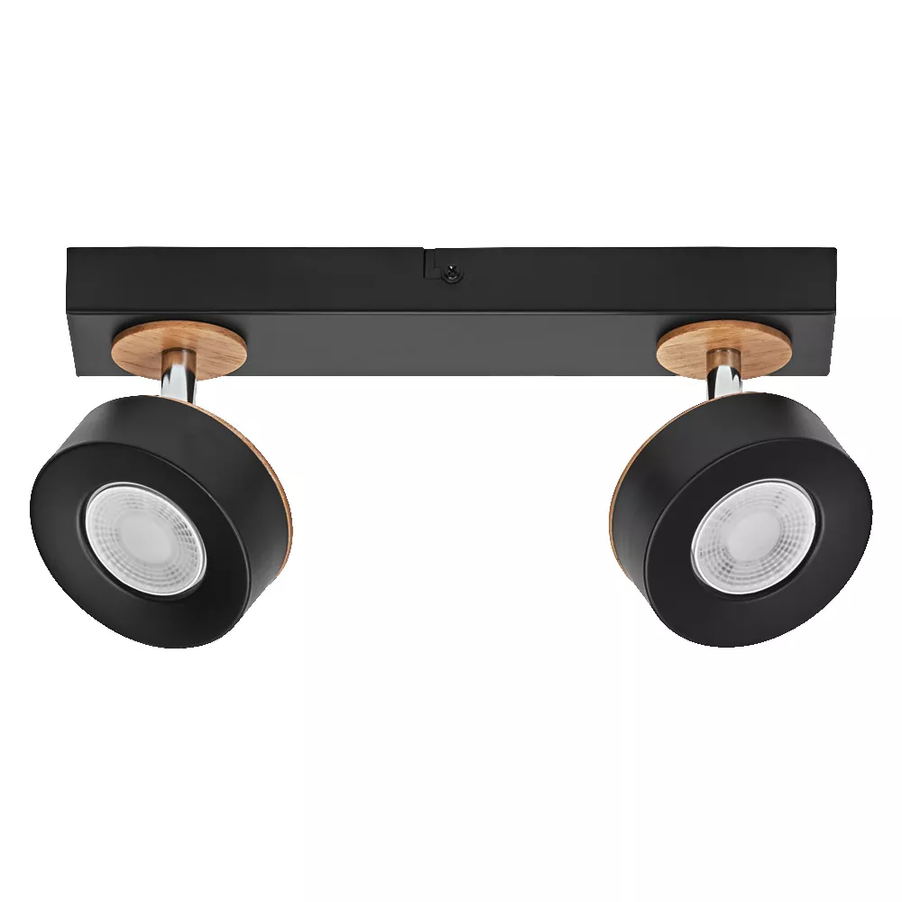 Oprawy sufitowe wykonane z materiałów mieszanych, z regulowanymi reflektorami. Cechy produktu: Rodzina opraw obejmuje cztery wersje z maksymalnie 4 głowicami punktowymi. Materiał obudowy: metal i drewno. Włącznik/wyłącznik w wersji 1-głowicowej dla łatwej obsługi. Regulowane oprawy. Zalety produktu: Wysokiej jakości obudowa o białej lub czarnej matowej powierzchni. Łatwy montaż. Obszary zastosowań: Zastosowania wewnętrzne. Korytarze, wejścia, klatki schodowe, pokoje dzienne, sutereny. Kuchnie, przestrzenie robocze. Montaż powierzchniowy na suficie i ścianach. Wyposażenie / Akcesoria: Kompletne akcesoria do montażu i podłączenia w zestawie. Porady dotyczące bezpieczeństwa: Wszystkie podłączenia elektryczne muszą być wykonane przez osobę wykwalifikowaną.. Uwaga, ryzyko porażenia prądem..