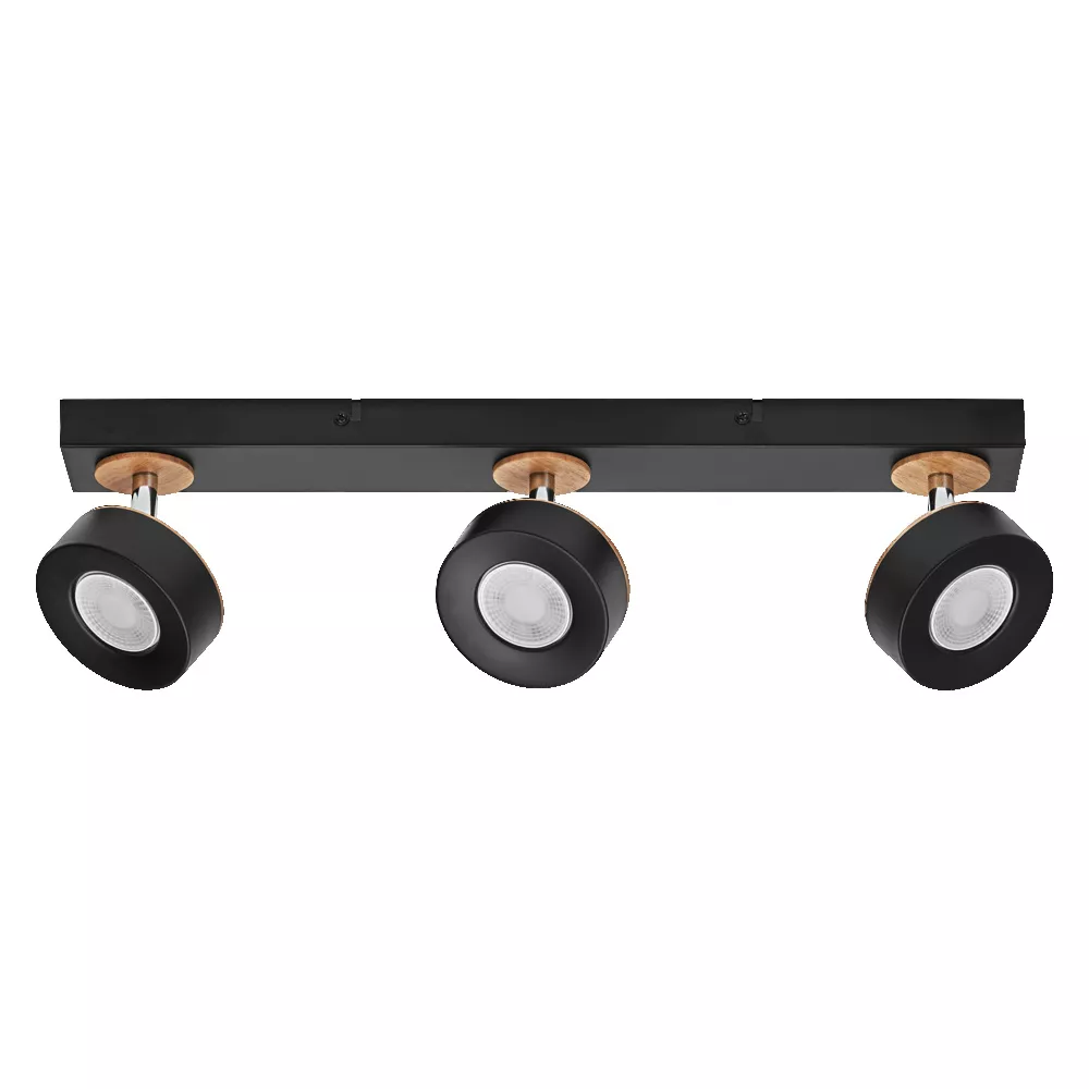 Oprawy sufitowe wykonane z materiałów mieszanych, z regulowanymi reflektorami. Cechy produktu: Rodzina opraw obejmuje cztery wersje z maksymalnie 4 głowicami punktowymi. Materiał obudowy: metal i drewno. Włącznik/wyłącznik w wersji 1-głowicowej dla łatwej obsługi. Regulowane oprawy. Zalety produktu: Wysokiej jakości obudowa o białej lub czarnej matowej powierzchni. Łatwy montaż. Obszary zastosowań: Zastosowania wewnętrzne. Korytarze, wejścia, klatki schodowe, pokoje dzienne, sutereny. Kuchnie, przestrzenie robocze. Montaż powierzchniowy na suficie i ścianach. Wyposażenie / Akcesoria: Kompletne akcesoria do montażu i podłączenia w zestawie. Porady dotyczące bezpieczeństwa: Wszystkie podłączenia elektryczne muszą być wykonane przez osobę wykwalifikowaną.. Uwaga, ryzyko porażenia prądem..