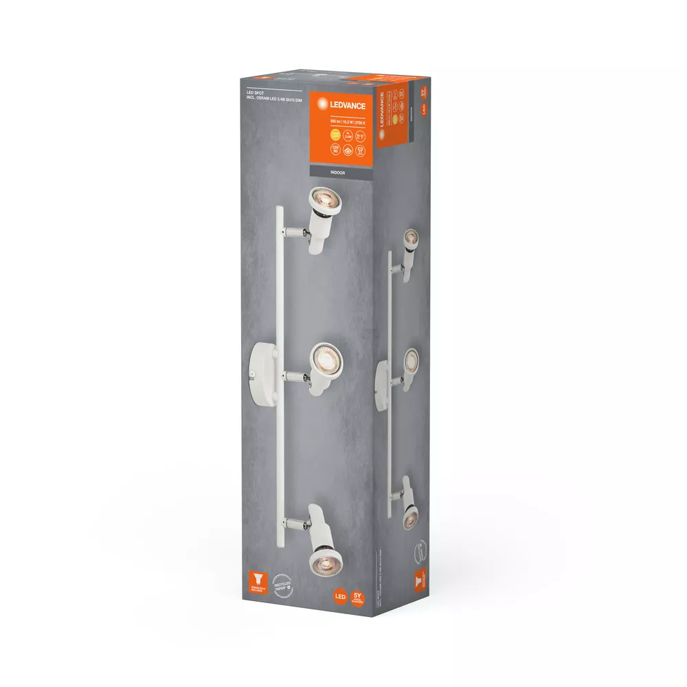 Oprawy sufitowe z regulowanymi, ściemnialnymi reflektorami GU10. Cechy produktu: Rodzina opraw obejmuje pięć wersji z maksymalnie 6 głowicami oświetlenia punktowego. Regulowane oprawy. Zalety produktu: Ponadczasowa stylistyka. Wysokiej jakości obudowa o białej lub czarnej matowej powierzchni. Uniwersalne rozwiązanie dzięki wymiennym lampom LED. W zestawie ściemniana lampa OSRAM. Łatwy montaż. Obszary zastosowań: Zastosowania wewnętrzne. Korytarze, wejścia, klatki schodowe, pokoje dzienne, sutereny. Kuchnie, przestrzenie robocze. Montaż powierzchniowy na suficie i ścianach. Wyposażenie / Akcesoria: Kompletne akcesoria do montażu i podłączenia w zestawie. Porady dotyczące bezpieczeństwa: Wszystkie podłączenia elektryczne muszą być wykonane przez osobę wykwalifikowaną.. Uwaga, ryzyko porażenia prądem.. Produkt w klasie ochrony I. Wszystkie przewodzące prąd, metalowe części obudowy, które mogą absorbować napięcie podczas pracy lub podczas konserwacji w przypadku awarii, muszą być stale PODŁĄCZONE do przewodu uziemiającego..