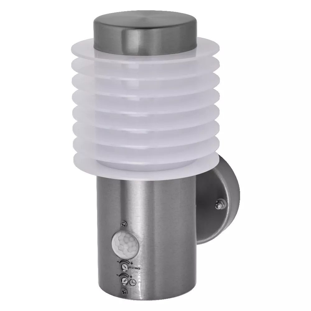 Oprawy ścienne z obudową ze stali nierdzewnej, kloszem matowym i opcjonalnym czujnikiem. Cechy produktu: Dostępne opcje z czujnikiem ruchu PIR i czujnikiem światła dziennego. Obudowa ze stali nierdzewnej. Stopień ochrony: IP44. Zalety produktu: Wydajne energetycznie dzięki technologii LED. Łatwa i szybka instalacja. Obszary zastosowań: Elewacje budynków. Oświetlenie awaryjne. Patia, balkony. Podjazdy. Wyposażenie / Akcesoria: Kompletne akcesoria do montażu i podłączenia w zestawie. Porady dotyczące bezpieczeństwa: Wszystkie podłączenia elektryczne muszą być wykonane przez osobę wykwalifikowaną.. Uwaga, ryzyko porażenia prądem.. Produkt w klasie ochrony I. Wszystkie przewodzące prąd, metalowe części obudowy, które mogą absorbować napięcie podczas pracy lub podczas konserwacji w przypadku awarii, muszą być stale PODŁĄCZONE do przewodu uziemiającego..