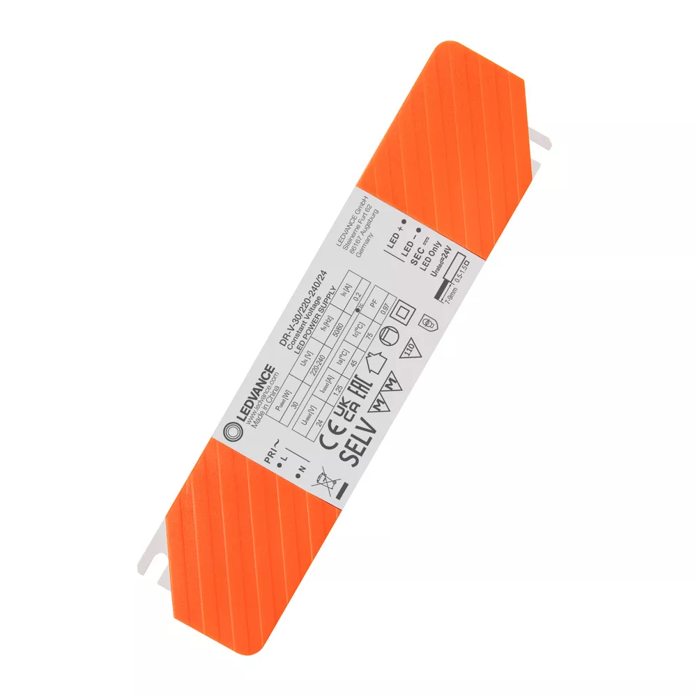 Stałonapięciowe zasilacze LED. Cechy produktu: Dostępne wersje o mocy: 30 W, 60 W, 120 W i 150 W. Zintegrowany zacisk przewodu umożliwia niezależną instalację. Trwałość: do 35 tys. godzin (przy maks. temperaturze tc). Stopień ochrony: IP20. Napięcie zasilania: 220…240 V. Częstotliwość pracy: 50/60 Hz. Praca z napięciem poniżej 60 V: bezpieczne, niskie napięcie (SELV). Odwracalna ochrona przed przegrzaniem, przeciążeniem i zwarciem. Zalety produktu: Doskonałe dopasowanie do uniwersalnych pasków LED 24 V. Doskonały współczynnik cena / wydajność. 3-letnia gwarancja. Szybki i łatwy montaż. Dobra wydajność i niezawodność. Obszary zastosowań: Oświetlenie wnęk, nawet w miejscach o ograniczonej przestrzeni. Naświetlacz do oświetlenia efektowego w pokojach dziennych, jadalniach, sypialniach i wejściach. Odpowiednie do instalacji oświetlenia wewnętrznego typu SELV. Biura, centra/ galerie handlowe, szpitale, restauracje, hotele.