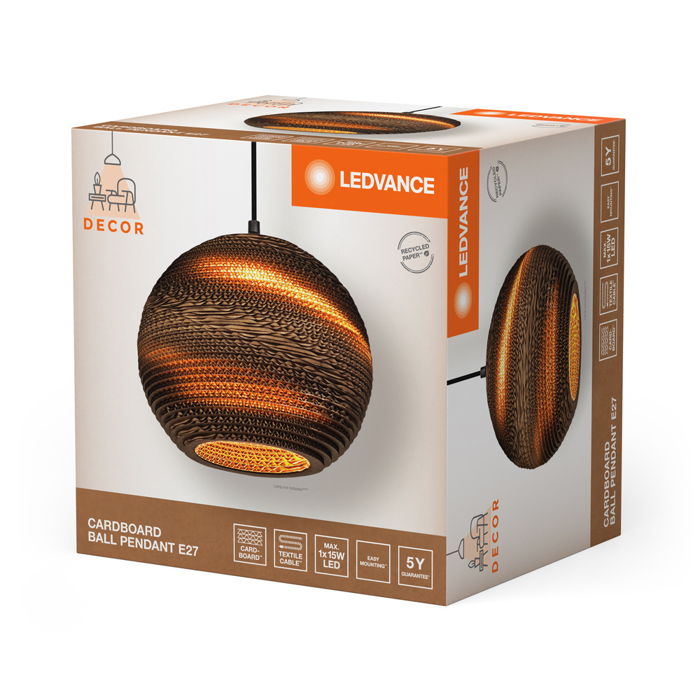 Oprawa Decor Cardboard Ball Pendant E27 Brown