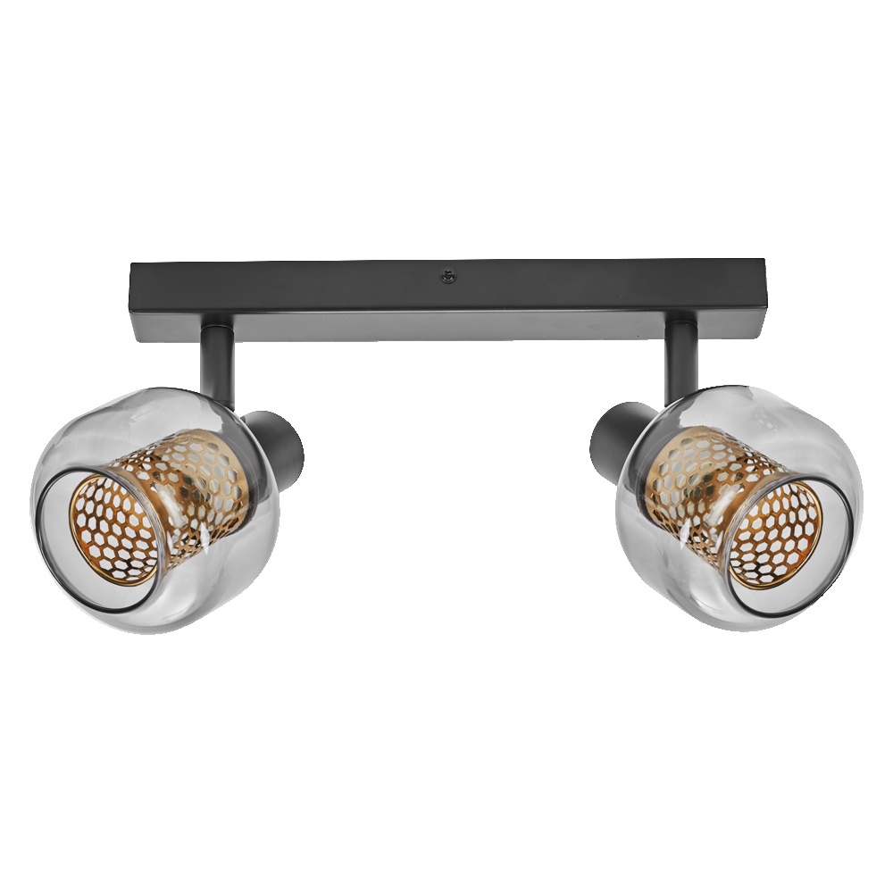 Oprawy sufitowe wykonane z połączenia złotej siatki o strukturze plastra miodu ze szkłem dymionym i gwintem E14. Cechy produktu: Materiał obudowy: metal i szkło. Zalety produktu: Świetnie komponuje się ze stylem industrialnym. Włącznik/wyłącznik w modelu 1-punktowym zapewniający wygodną obsługę