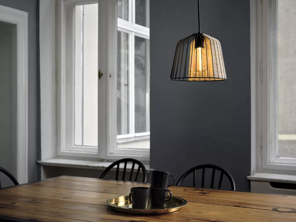 Dekoracyjne oprawy oświetleniowe wykonane z rattanu i metalu z gwintem E27. Cechy produktu: Materiał obudowy: rattan i metal. Przewód tekstylny. Zalety produktu: Świetnie komponuje się ze stylem industrialnym. Solidna konstrukcja klatki z przyciągającymi wzrok elementami konstrukcyjnymi. Konstrukcja z otwartą klatką sprawia, że lampy stanowią główną atrakcję oprawy. Zrównoważone rozwiązanie dzięki wymiennym źródłom światła. Łatwy montaż. Obszary zastosowań: Zastosowania wewnętrzne. Korytarze, wejścia, klatki schodowe, pokoje dzienne, sutereny. Porady dotyczące bezpieczeństwa: Wszystkie podłączenia elektryczne muszą być wykonane przez osobę wykwalifikowaną.. Uwaga, ryzyko porażenia prądem.. Sprawdź przydatność ściany i sufitu. Jeśli nie jesteś pewien, zasięgnij profesjonalnej porady..