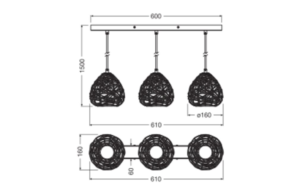 | Długość zawieszki: | 1 500 - 1 500 mm |