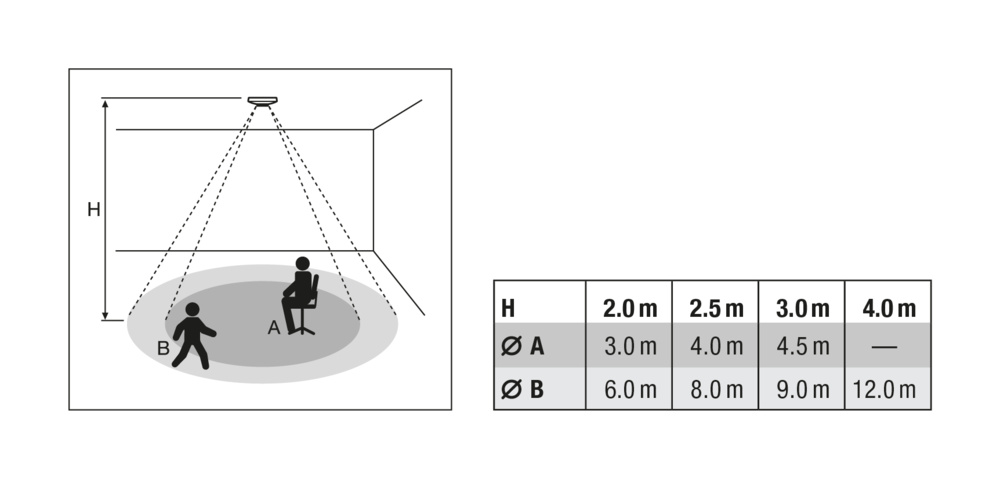 Urządzenie wejściowe DALI-2, czujnik obecności na podczerwień z detekcją ruchu w promieniu 8 m . Cechy produktu: Certyfikowany czujnik światła i obecności DALI-2 do montażu sufitowego. Wykrywanie obecności za pomocą pasywnego elementu IR. Wysokość detekcji do 4 m. Duży obszar detekcji do 8 m. Wyświetlacz funkcji z LED. Zalety produktu: Czujnik światła do 2000 lx. Szybki i łatwy montaż za pomocą zacisków sprężynowych. Zintegrowany zasilacz magistrali DALI (nie wymaga podłączenia do sieci). Do linii DALI można podłączyć kilka czujników. Można zintegrować z systemami oświetlenia i zarządzania budynkiem obsługującymi czujniki DALI-2. Kompatybilny z systemem sterowania oświetleniem LEDVANCE VIVARES DALI. Zawiera przesłonę, która optymalizuje obszar wykrywania czujnika. Obszary zastosowań: Otwarte przestrzenie biurowe. Pomieszczenia konferencyjne, magazynowe i socjalne. Sale lekcyjne. Schody. Wyposażenie / Akcesoria: Montaż natynkowy za pomocą SENSOR CM KIT.