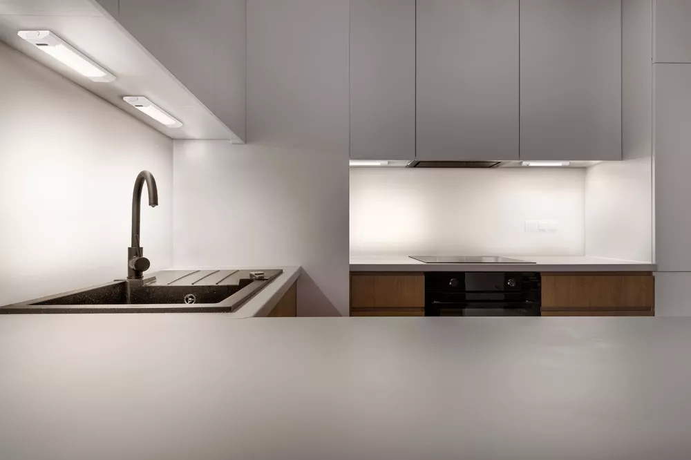 Wysokonapięciowe podszafkowe oprawy oświetleniowe z czujnikiem podczerwieni. Cechy produktu: Bezpośrednie podłączenie do zasilania sieciowego dzięki zintegrowanemu osprzętowi sterującemu. Temperatura barwowa światła regulowana jest w trzech krokach. Włączanie i wyłączanie za pomocą ruchu w odległości 5 cm od czujnika ruchu na podczerwień. Płynne ściemnianie poprzez przykrycie czujnika ruchu w odległości maks. 6 cm przez co najmniej jedną sekundę. Dostępne 2 różne długości. Trwałość: do 30 000 h. Materiał: aluminium (obudowa), poliwęglany (dyfuzor). Zalety produktu: Łatwe i szybkie podłączenie szeregowe dzięki prostemu systemowi wtyczek. Możliwość podłączenia do 10 opraw (wersja 30 cm) i 5 opraw (wersja 50 cm) w rzędzie za pomocą dołączonego złącza zapewniającego bezproblemowe połączenie lub za pomocą kabla przyłączeniowego w przypadku większych odległości. Wysoka wszechstronność dzięki możliwości wyboru CCT. Równomierny rozsył strumienia świetlnego. Obszary zastosowań: Kuchnie, Pomieszczenia mieszkalne, Oświetlenie półek i szafek. Wyposażenie / Akcesoria: Kompletne akcesoria do montażu i podłączenia w zestawie. Porady dotyczące bezpieczeństwa: Aby ograniczyć ryzyko uduszenia, elastyczne przewody PODŁĄCZONE do tej oprawy należy solidnie przymocować do ściany, jeśli znajdują się w zasięgu ręki.. Ostrzeżenie dotyczące baterii: Przechowywać poza zasięgiem dzieci. Połknięcie może prowadzić do oparzeń chemicznych, perforacji tkanek miękkich i śmierci. Ciężkie oparzenia mogą wystąpić w ciągu 2 godzin od połknięcia. Natychmiast zasięgnij porady lekarza. . Jeśli komora baterii (jeśli dotyczy) nie zamyka się bezpiecznie, zaprzestań używania produktu i trzymaj go z dala od dzieci. Jeśli podejrzewasz, że baterie mogły zostać połknięte lub umieszczone w jakiejkolwiek części ciała, natychmiast zwróć się o pomoc lekarską.. Prosimy unikać: Maksymalna temperatura otoczenia: +35 °C. Wymiana baterii na nieprawidłowy typ, który może obejść zabezpieczenie (na przykład w przypadku niektórych typów baterii litowych). Wysokość podczas pracy: 2000 m. Utylizacja baterii w ogniu lub gorącym piekarniku, lub mechaniczne zgniatanie lub cięcie baterii, co może spowodować wybuch..