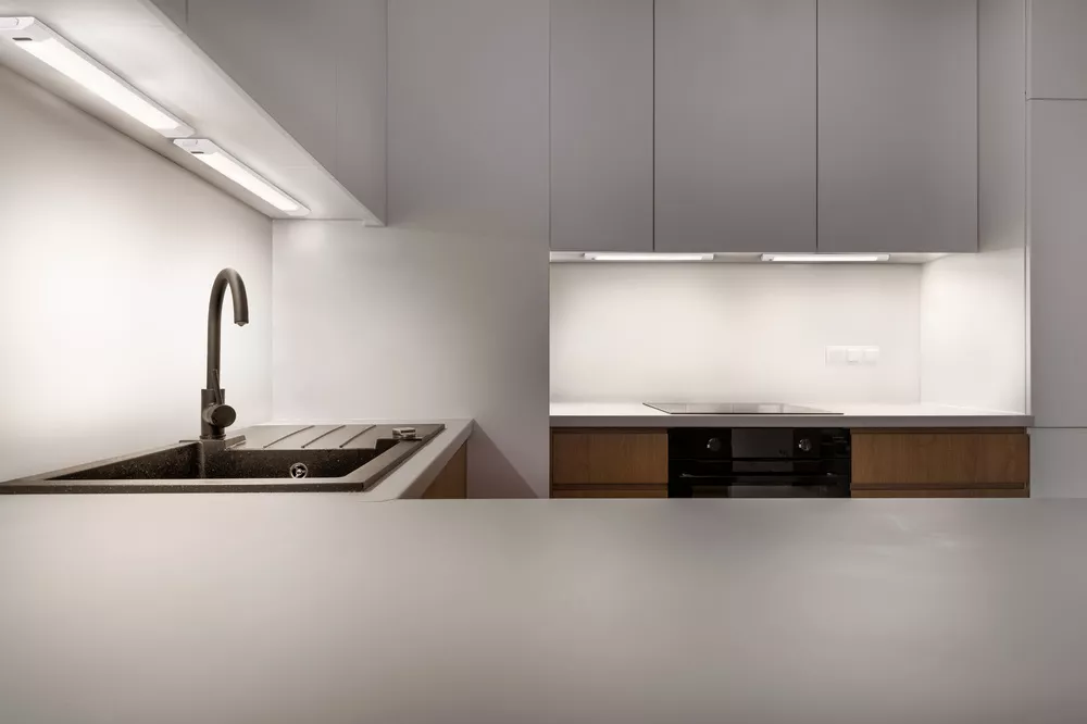 Wysokonapięciowe podszafkowe oprawy oświetleniowe z czujnikiem podczerwieni. Cechy produktu: Bezpośrednie podłączenie do zasilania sieciowego dzięki zintegrowanemu osprzętowi sterującemu. Temperatura barwowa światła regulowana jest w trzech krokach. Włączanie i wyłączanie za pomocą ruchu w odległości 5 cm od czujnika ruchu na podczerwień. Płynne ściemnianie poprzez przykrycie czujnika ruchu w odległości maks. 6 cm przez co najmniej jedną sekundę. Dostępne 2 różne długości. Trwałość: do 30 000 h. Materiał: aluminium (obudowa), poliwęglany (dyfuzor). Zalety produktu: Łatwe i szybkie podłączenie szeregowe dzięki prostemu systemowi wtyczek. Możliwość podłączenia do 10 opraw (wersja 30 cm) i 5 opraw (wersja 50 cm) w rzędzie za pomocą dołączonego złącza zapewniającego bezproblemowe połączenie lub za pomocą kabla przyłączeniowego w przypadku większych odległości. Wysoka wszechstronność dzięki możliwości wyboru CCT. Równomierny rozsył strumienia świetlnego. Obszary zastosowań: Kuchnie, Pomieszczenia mieszkalne, Oświetlenie półek i szafek. Wyposażenie / Akcesoria: Kompletne akcesoria do montażu i podłączenia w zestawie. Porady dotyczące bezpieczeństwa: Aby ograniczyć ryzyko uduszenia, elastyczne przewody PODŁĄCZONE do tej oprawy należy solidnie przymocować do ściany, jeśli znajdują się w zasięgu ręki.. Ostrzeżenie dotyczące baterii: Przechowywać poza zasięgiem dzieci. Połknięcie może prowadzić do oparzeń chemicznych, perforacji tkanek miękkich i śmierci. Ciężkie oparzenia mogą wystąpić w ciągu 2 godzin od połknięcia. Natychmiast zasięgnij porady lekarza. . Jeśli komora baterii (jeśli dotyczy) nie zamyka się bezpiecznie, zaprzestań używania produktu i trzymaj go z dala od dzieci. Jeśli podejrzewasz, że baterie mogły zostać połknięte lub umieszczone w jakiejkolwiek części ciała, natychmiast zwróć się o pomoc lekarską.. Prosimy unikać: Maksymalna temperatura otoczenia: +35 °C. Wymiana baterii na nieprawidłowy typ, który może obejść zabezpieczenie (na przykład w przypadku niektórych typów baterii litowych). Wysokość podczas pracy: 2000 m. Utylizacja baterii w ogniu lub gorącym piekarniku, lub mechaniczne zgniatanie lub cięcie baterii, co może spowodować wybuch..
