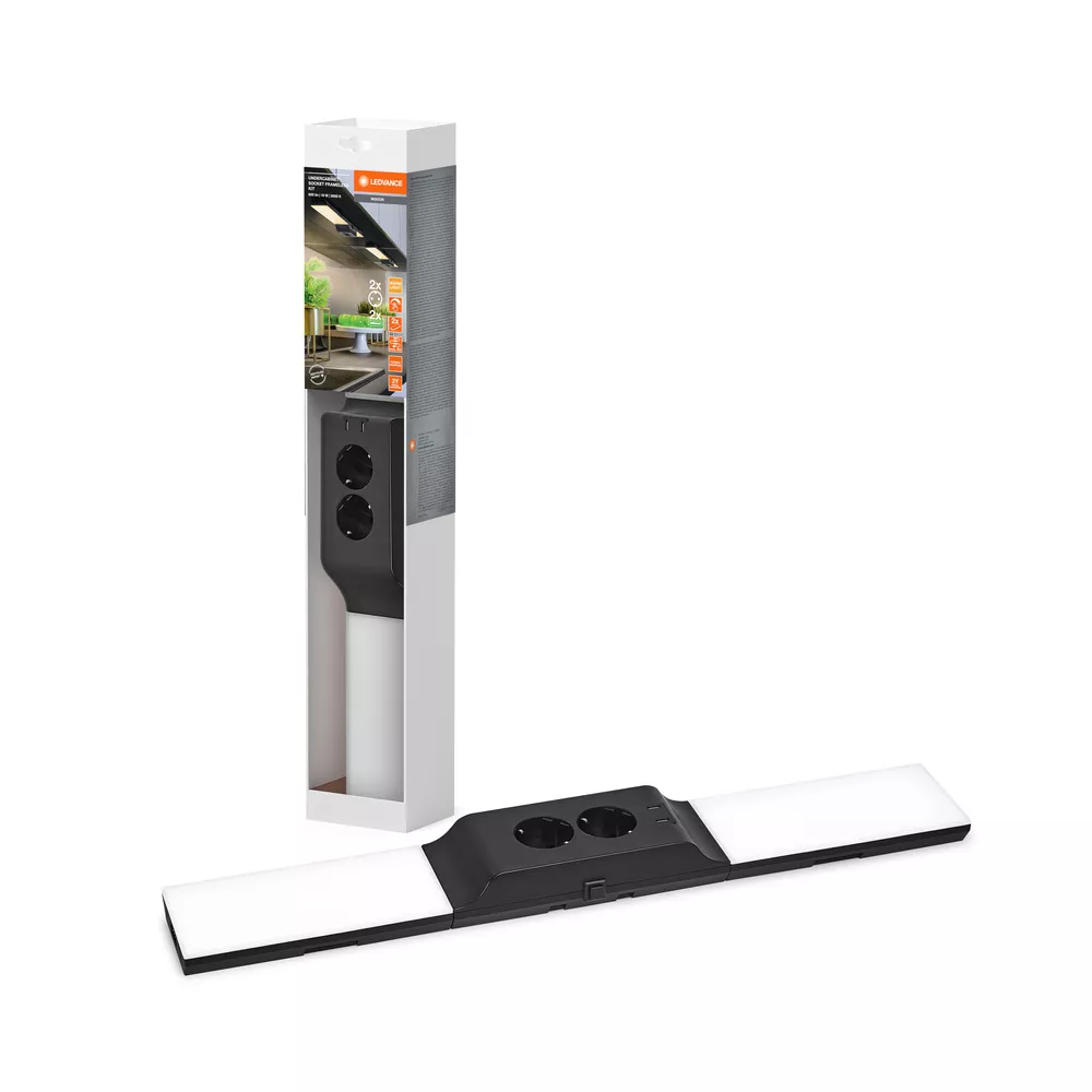 Zestaw opraw podszafkowych bezramkowych z gniazdami zasilającymi i portami USB-C. Cechy produktu: Moduł gniazda może zasilać urządzenia o mocy wyjściowej do 2400 W. 2 gniazda EU (maks. 10A) i 2x USB C (5V 2,4A). Włączanie i wyłączanie poprzez naciśnięcie i przytrzymanie przycisku przez 1 sekundę. Płynne przyciemnianie poprzez naciśnięcie i przytrzymanie przycisku dłużej niż 3 sekundy. Zestaw startowy zawiera jeden moduł gniazda i dwa moduły świetlne. Zestaw rozszerzający zawiera jeden moduł świetlny. Trwałość: do 30 000 h. Zalety produktu: Wielofunkcyjne zastosowanie: oświetlenie i funkcja zasilania/ładowania w jednej oprawie. Dwa gniazda zasilania i dwa porty USB-C do obsługi dodatkowego sprzętu (urządzenia kuchenne, urządzenia mobilne). Indywidualne rozmieszczenie modułów świetlnych po prawej lub lewej stronie lub mieszane, w zależności od własnych potrzeb. Podłączenie do 4 modułów świetlnych za pomocą prostego systemu kliknięć. Obszary zastosowań: Kuchnie, Pomieszczenia mieszkalne, Oświetlenie półek i szafek. Wyposażenie / Akcesoria: Kompletne akcesoria do montażu i podłączenia w zestawie. Porady dotyczące bezpieczeństwa: Produkt w klasie ochrony I. Wszystkie przewodzące prąd, metalowe części obudowy, które mogą absorbować napięcie podczas pracy lub podczas konserwacji w przypadku awarii, muszą być stale PODŁĄCZONE do przewodu uziemiającego.. Aby ograniczyć ryzyko uduszenia, elastyczne przewody PODŁĄCZONE do tej oprawy należy solidnie przymocować do ściany, jeśli znajdują się w zasięgu ręki..