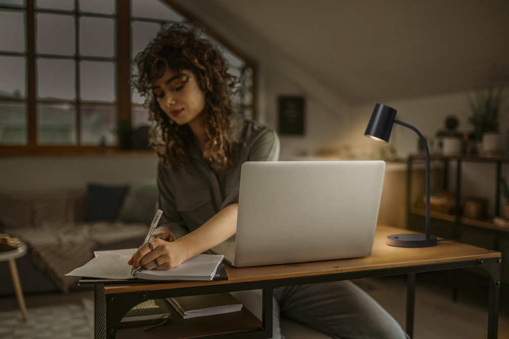Oprawa biurkowa z giętkim ramieniem i oprawką GU10. Cechy produktu: Oprawa biurkowa o klasycznym wzornictwie z oprawką GU10. Zalety produktu: Zrównoważone rozwiązanie dzięki wymiennym źródłom światła. Przełącznik liniowy na podstawie. Możliwość złożenia i zgięcia do 170° dla zapewnienia maksymalnej elastyczności. Obrotowa głowica oprawy umożliwiająca indywidualne ustawienie źródła światła. Obszary zastosowań: Pomieszczenia codziennego użytku. Stoliki, biurka. Biura w domu. Wyposażenie / Akcesoria: Wyposażony w przewód o długości 1,6 m i wtyczkę. Porady dotyczące bezpieczeństwa: Aby ograniczyć ryzyko uduszenia, elastyczne przewody PODŁĄCZONE do tej oprawy należy solidnie przymocować do ściany, jeśli znajdują się w zasięgu ręki..