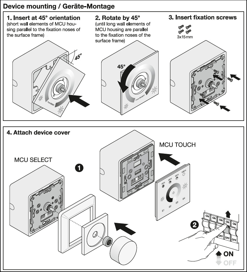 Ramka do montażu powierzchniowego dla rodzin produktów MCU SELECT i MCU TOUCH. Cechy produktu: Ramka do montażu naściennego do montażu produktów CU SELECT i CU TOUCH. Zalety produktu: Łatwy do montażu na ścianach. Możliwość wprowadzenia przewodu z tyłu lub z boku. Obszary zastosowań: Pomieszczenia ze ścianami, w których nie jest możliwy montaż puszek podtynkowych.