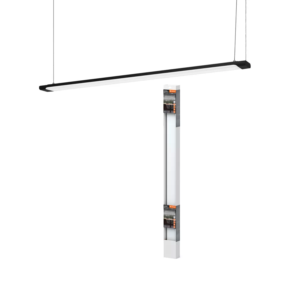 luminaire , biurowa oprawa sufitowa z możliwością przyciemniania. Cechy produktu: Trwałość: do 50 000 h. Ściemnialne. Temperatura barwowa: 4000 K. Materiał: aluminium (obudowa), poliwęglany (dyfuzor). Zalety produktu: Super smukła konstrukcja. Montaż podwieszany w celu oświetlenia powierzchni roboczej. Obszary zastosowań: Oświetlenie biur. Zastosowania wewnętrzne. Biura w domu. Ogólne oświetlenie wnętrz. Kuchnie, przestrzenie robocze. Wyposażenie / Akcesoria: Kompletne akcesoria do montażu i podłączenia w zestawie. Porady dotyczące bezpieczeństwa: Wszystkie podłączenia elektryczne muszą być wykonane przez osobę wykwalifikowaną.. Uwaga, ryzyko porażenia prądem.. Produkt w klasie ochrony I. Wszystkie przewodzące prąd, metalowe części obudowy, które mogą absorbować napięcie podczas pracy lub podczas konserwacji w przypadku awarii, muszą być stale PODŁĄCZONE do przewodu uziemiającego.. Sprawdź przydatność ściany i sufitu. Jeśli nie jesteś pewien, zasięgnij profesjonalnej porady..