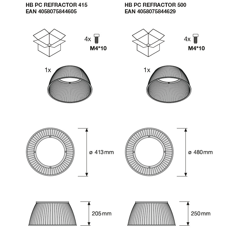 Oprawy DALI typu High-Bay o skuteczności świetlnej do 181 lm/W i niskim wskaźniku UGR. Cechy produktu: Różny strumień świetlny i kąt rozsyłu światła dla wysokości montażu od ~ 6 m do 18 m w temperaturze barwowej światła 4000 K lub 6500 K. Zakres ściemniania (DALI): 10…100 %. Trwałość (L80/B10): do 100 000 h (przy 35°C). Zalety produktu: Poprawiona wartość UGR w porównaniu do poprzednich generacji, aż do UGR ≤ 19 (<150W, 70°) w połączeniu z odbłyśnikiem. Wysoka skuteczność świetlna. Oszczędność energii do 70% w porównaniu z konwencjonalnymi oprawami oświetleniowymi typu high bay. Zoptymalizowana masa i rozmiary dzięki kompaktowej konstrukcji. Obszary zastosowań: Bezpośredni zamiennik opraw oświetleniowych typu High Bay do lamp rtęciowych lub metalohalogenkowych. Magazyny, hale logistyczne. Przemysł. Wysokie pomieszczenia (np.: centra handlowe, lotniska, budynki komercyjne, hole). Wyposażenie / Akcesoria: Zaczep do montażu w zestawie. Uchwyty montażowe, odbłyśniki i refraktory dostępne jako oddzielne akcesoria.